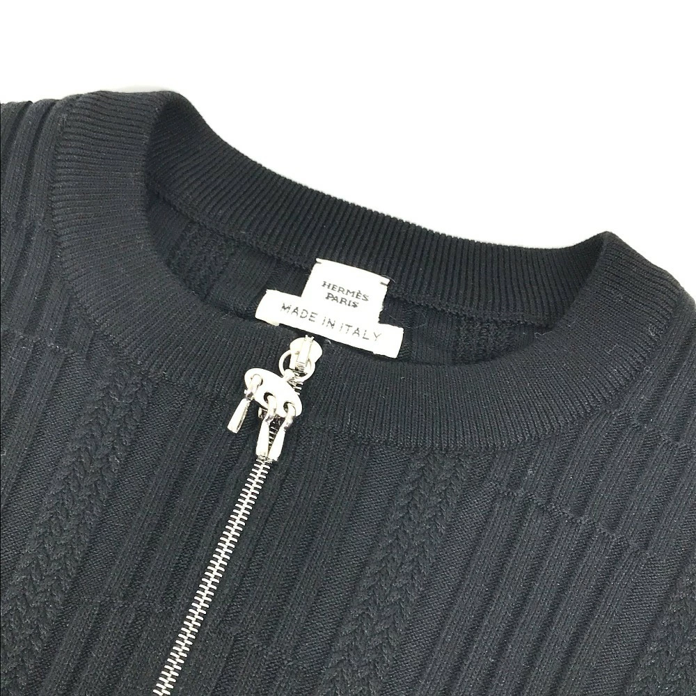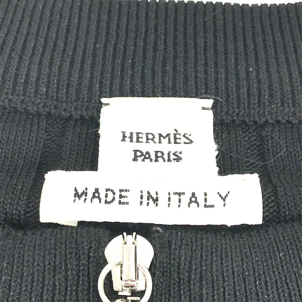 HERMES 2025 Spring/Summer "Mors à Joue" Apparel Outerwear Long Sleeve Cardigan with Bit Logo, Silk/Polyamide, Women's, Black [Pre-owned]