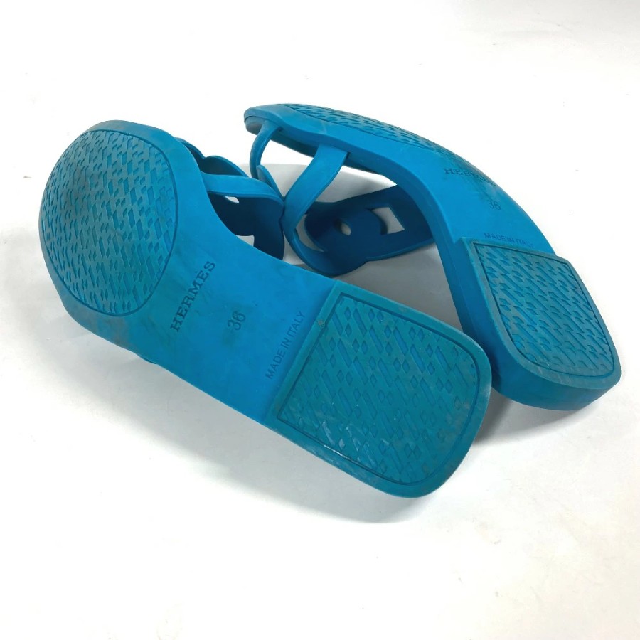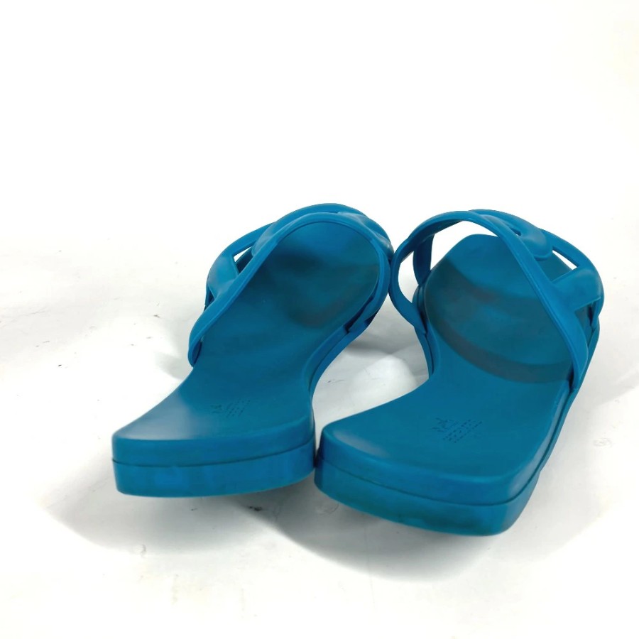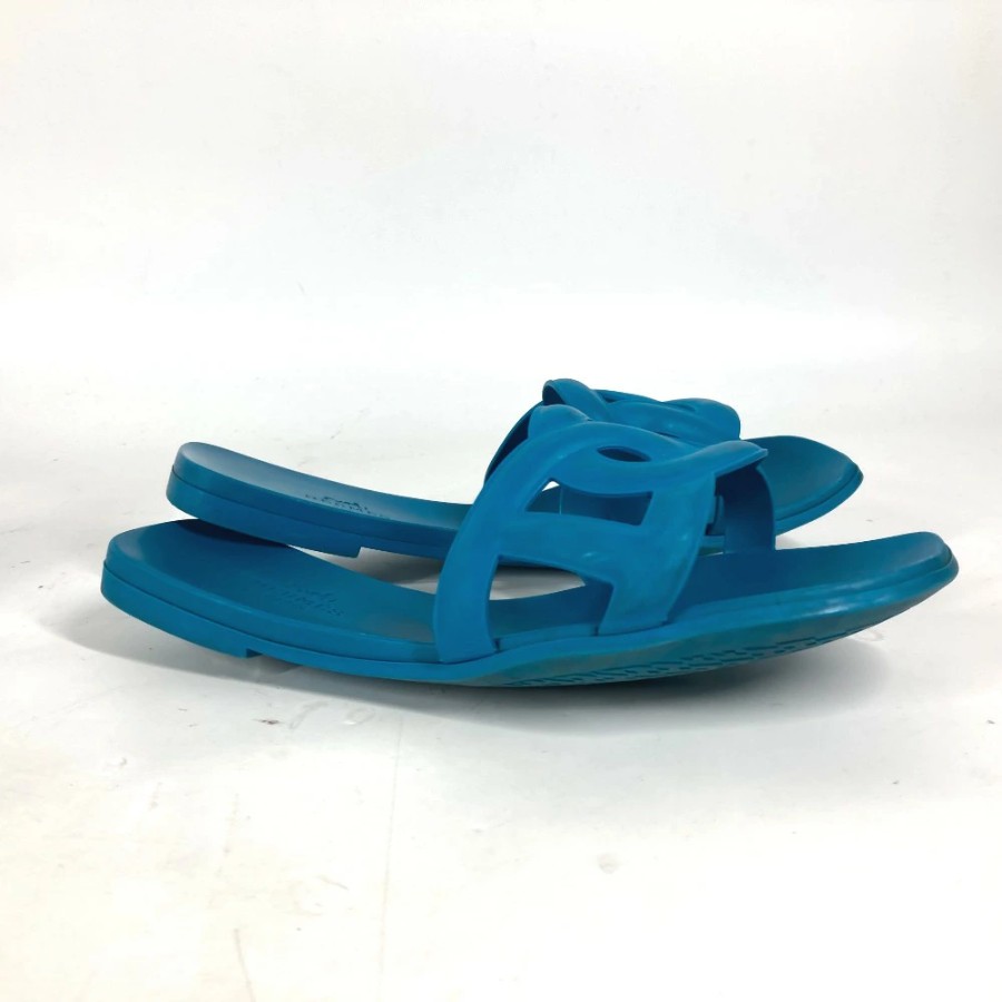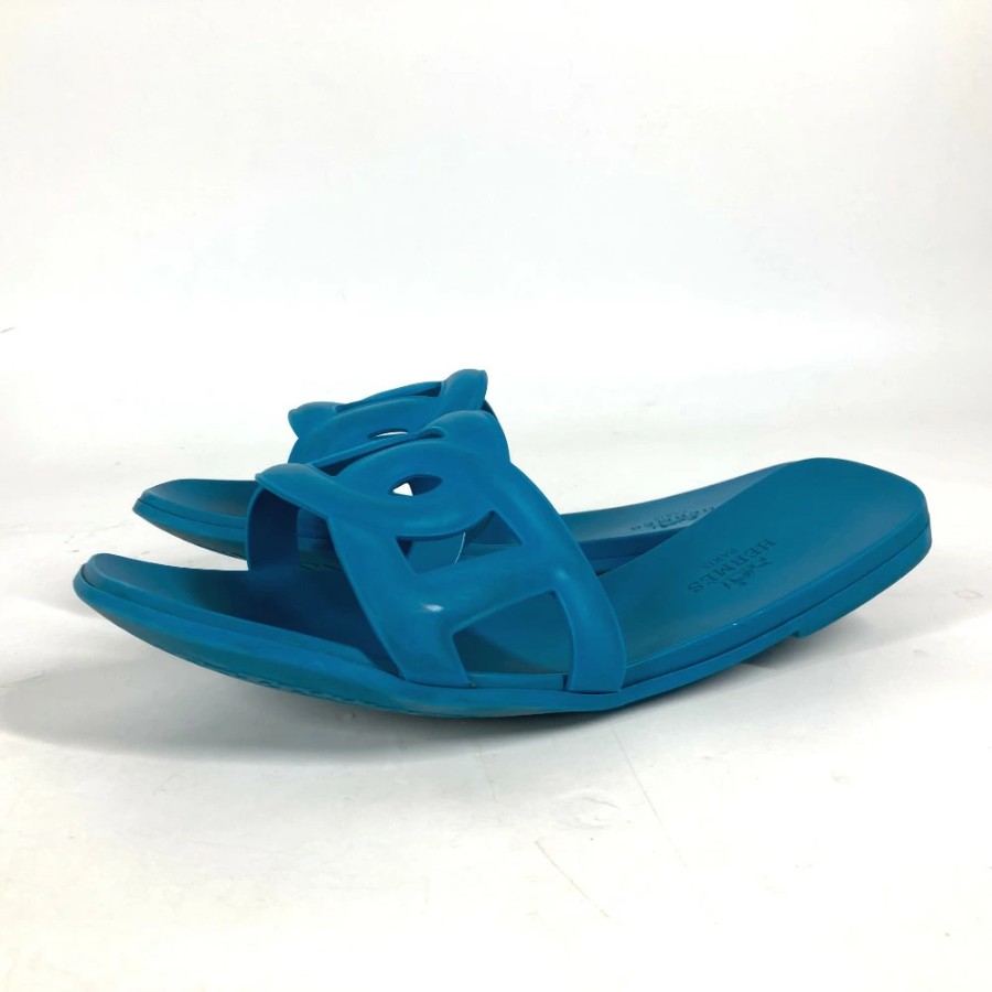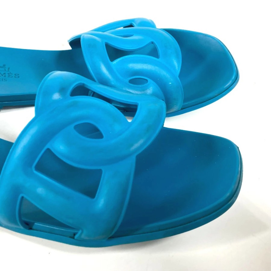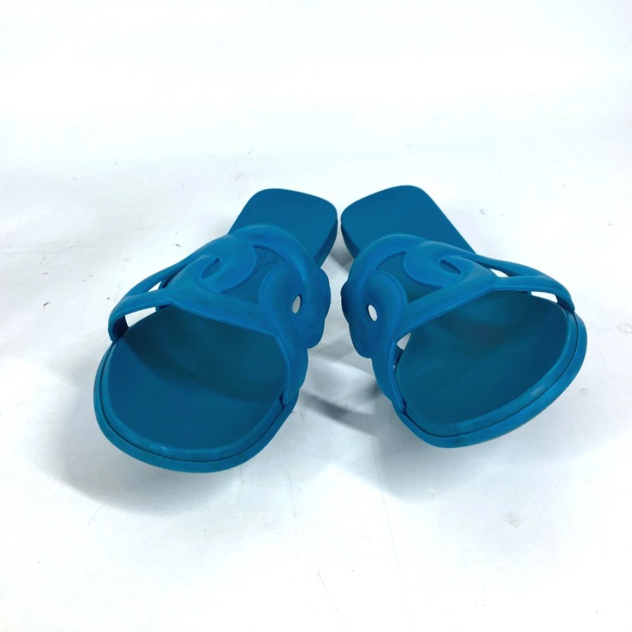 HERMES Aloha Shoes, Flats, Chaine d'Ancre Sandals, Rubber, Women's, Blue [Used]