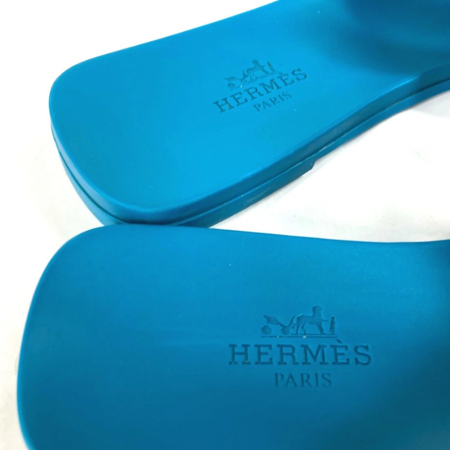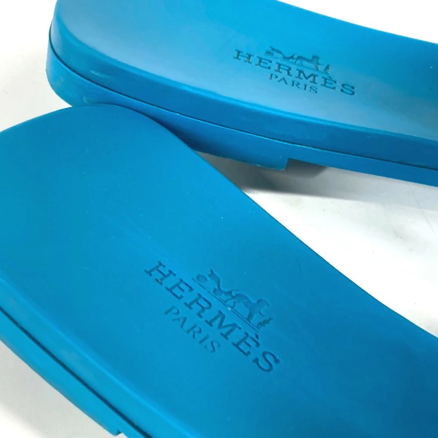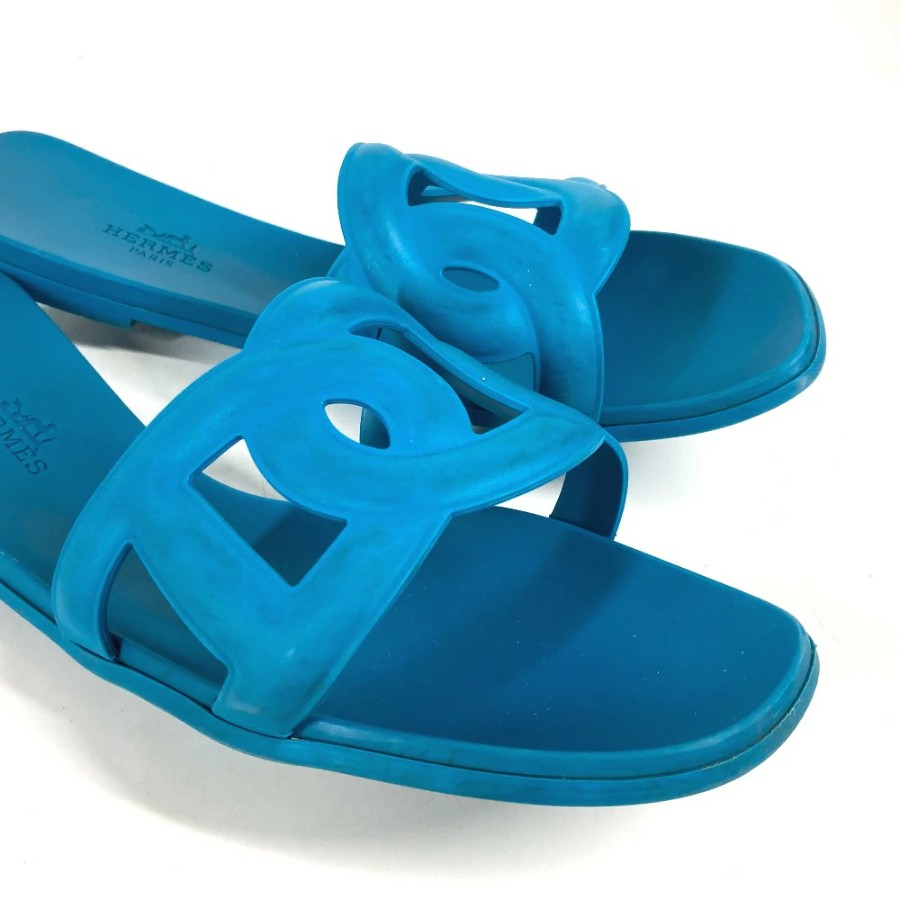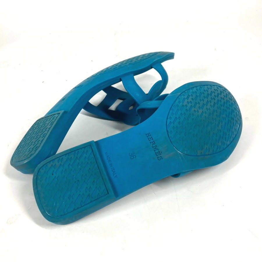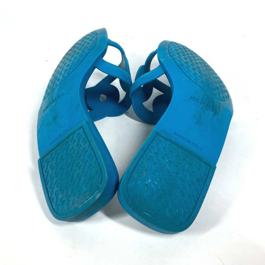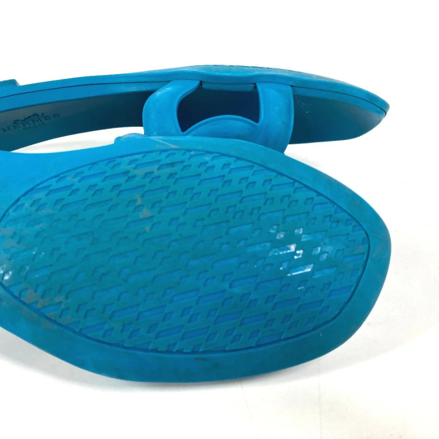 HERMES Aloha Shoes, Flats, Chaine d'Ancre Sandals, Rubber, Women's, Blue [Used]