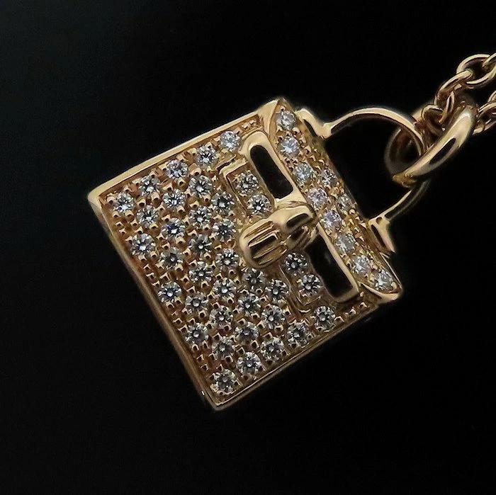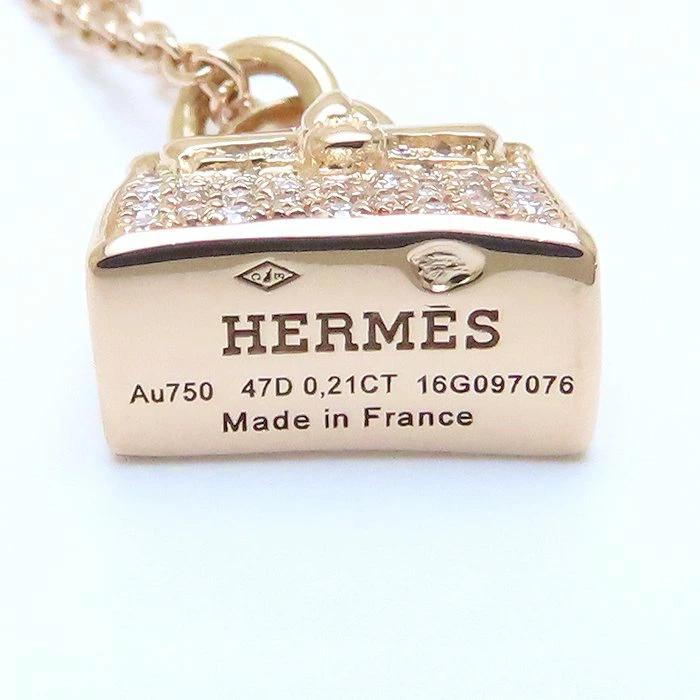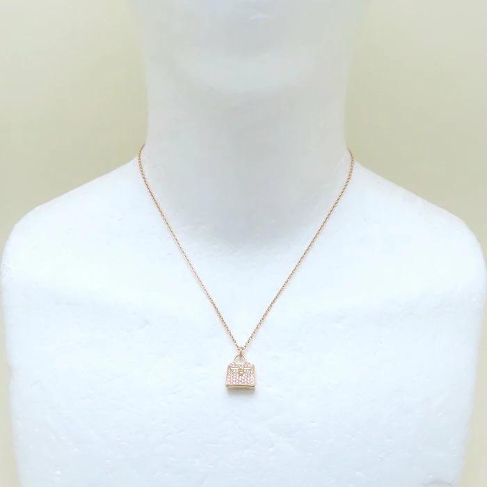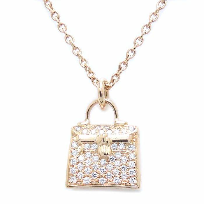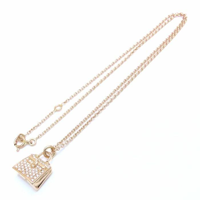 HERMES Amulet Kelly Necklace with 0.21ct Diamond, H121310B00, 18K Pink Gold / 294035 [Pre-owned] [BJ]