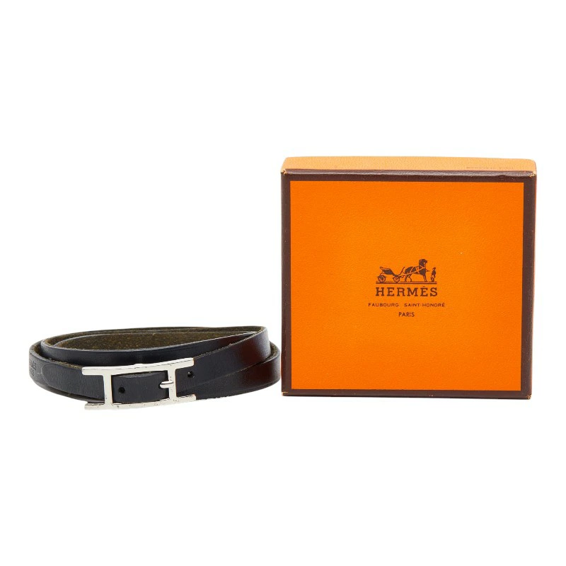 - エルメス ブレスレット 3連 ブラック レザー レディース HERMES 【中古】