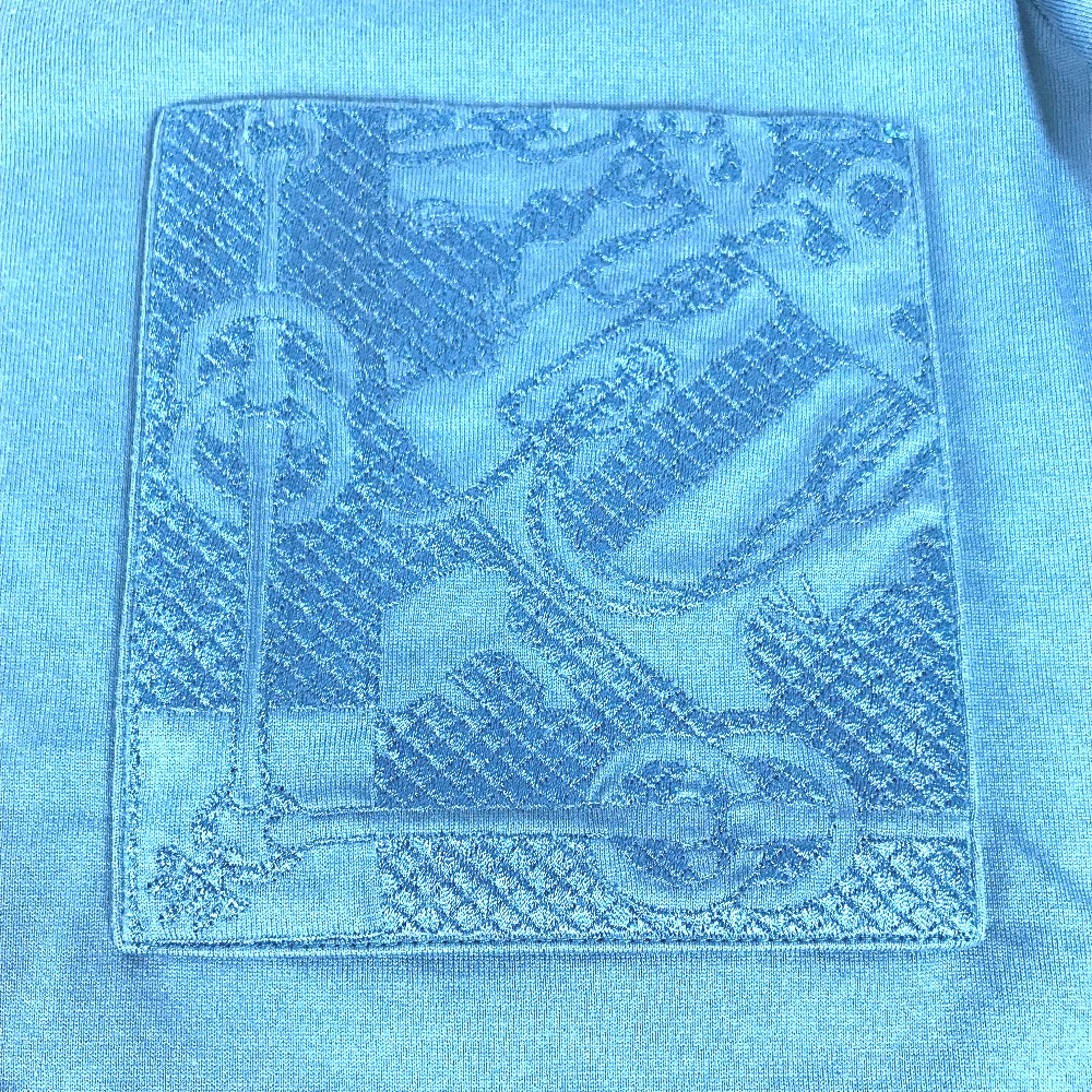 HERMES Apparel Tops, Short Sleeve T-Shirt with Embroidered Pocket, Cotton, Women's, Blue, Unused, Pre-owned