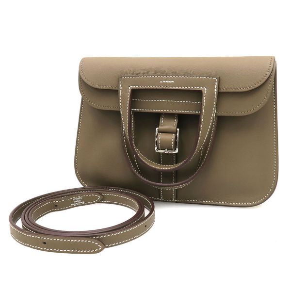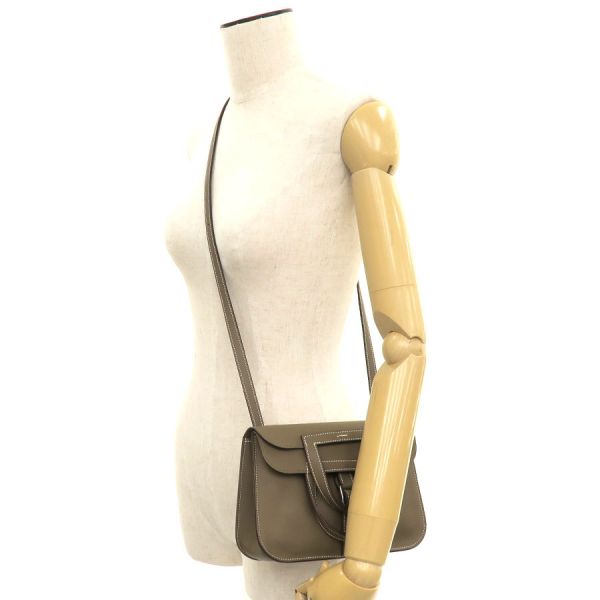 2014年の登場から今日に至るまで絶大な人気を誇るバッグ“アルザン”!! 人気のこのモデルからコンパクトなサイズ感となる『アルザンミニ』の入荷となります。 エルメスらしいシンプルで主張を抑えたデザイン性はそのままにコンパクトなサイズ感となったこのバッグ!! お財布やスマートフォンといった小物類の持ち運びに特化したバッグと言えます!! その為、普段のデイリーユースは勿論の事、旅先でのサブバッグとしても活躍してくれるバッグとなります!! 持ち運び方法もハンドタイプ、セカンドタイプ、斜め掛け、肩掛けと様々な方法があるなど大変実用的なバッグと言えますね♪状態はAランクでの入荷になり、僅かな型崩れ、フチ周りの僅かなスレ、背面におけるうっすらとした黒ずみ汚れ、ショルダーストラップ調節穴付近の湖底による金具跡とクセ・フチ部のスレ、内側のスレと一部汚れがございます。 大きく目立つようなダメージは抑えらえた上に、人気カラーエトゥープでの入荷となりますので、お早めにどうぞ!