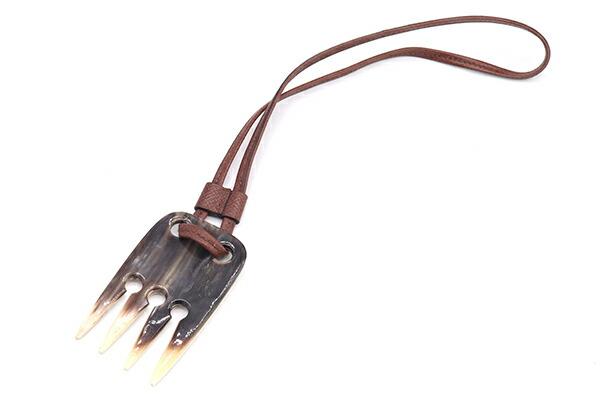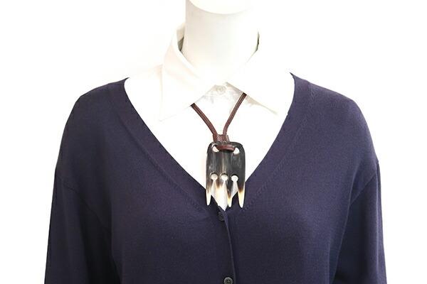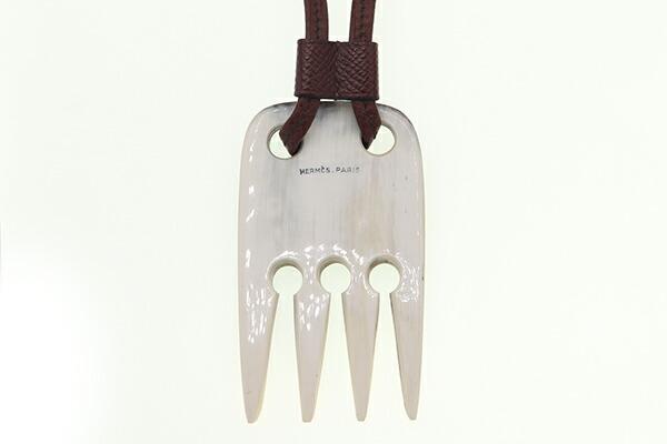 エルメスバッグチャームコームチャームアイボリーブラウンバッファローホーン中古かんざしペンダントアクセサリーチョーカーレディースHERMES