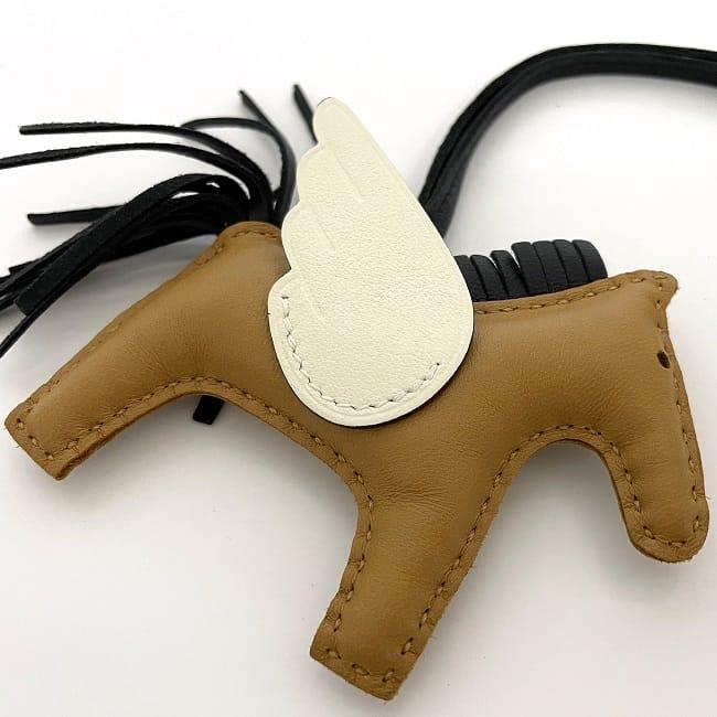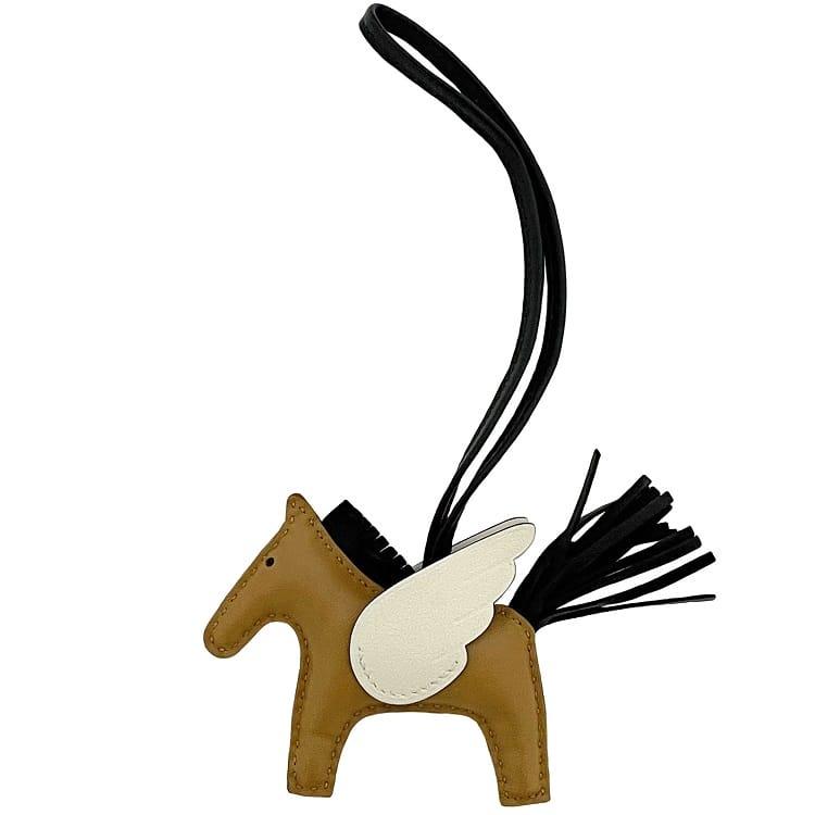 エルメス バッグチャーム ペガサス PM f-23382 ブラウン ホワイト ブラック セサミ ナタ 美品 アニューミロ 中古 B刻印 HERMES 馬 チャーム アクセサリー 羽 ホース 茶色 白 黒 定番 人気 メンズ レディース 箱付き ブランド 本物 鑑定済み