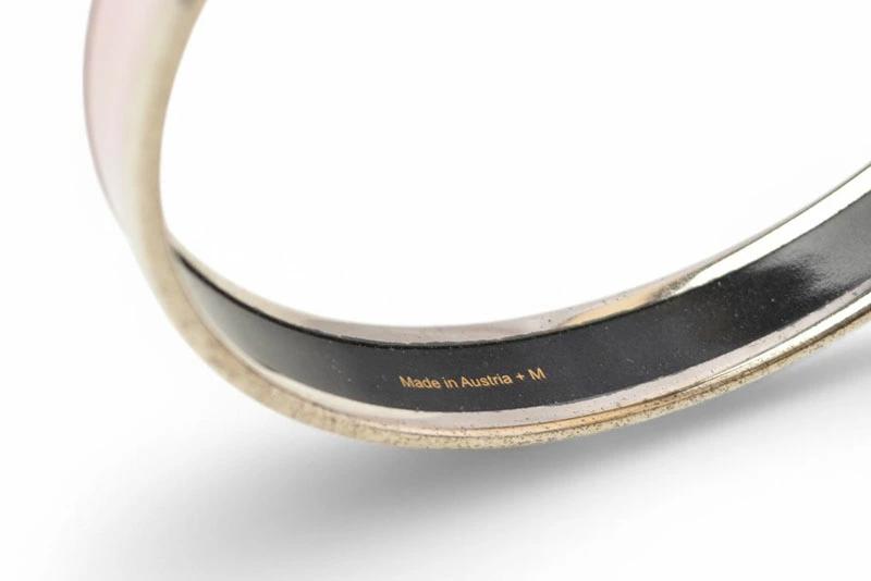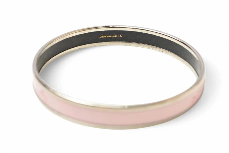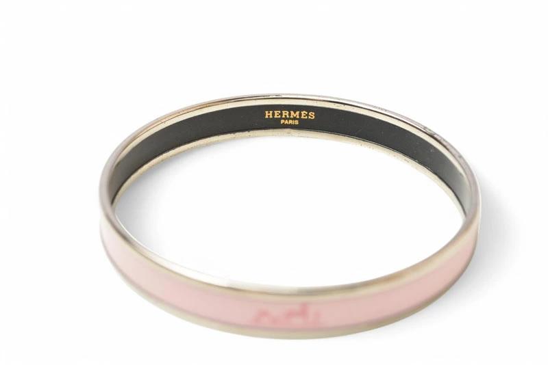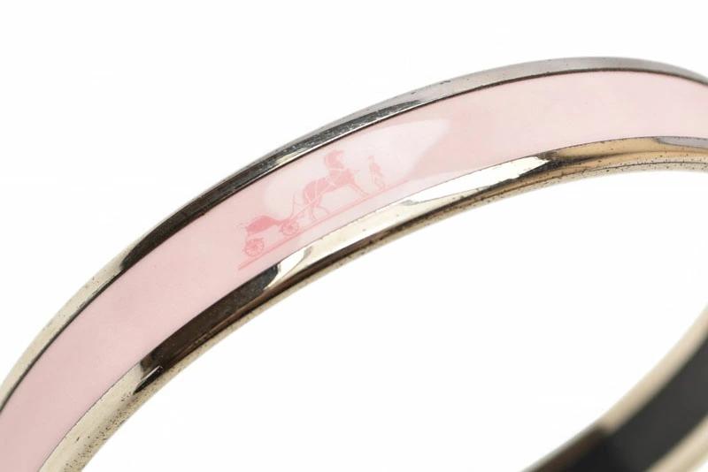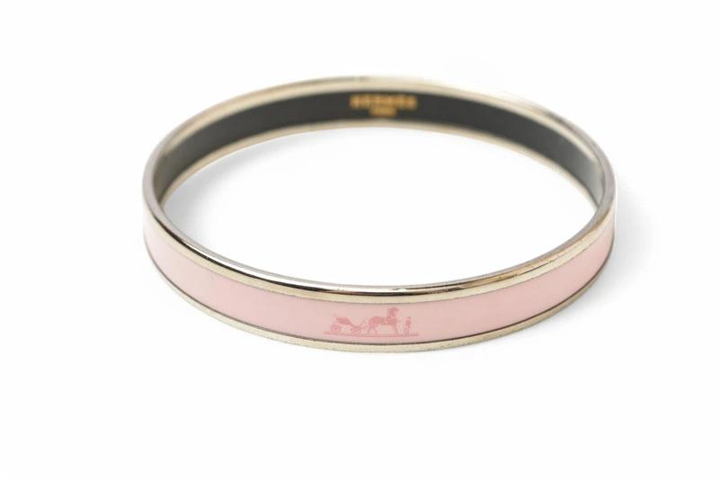 商品説明 | エルメスより、人気のバングル、エマイユ バングルです。HERMESに古くから伝わる手づくりの技法によって作られる定番人気のアクセサリーです。ライトピンクを基調とし、カレーシュがモチーフです。手首を女性らしい繊細な印象に見せてくれます。さりげなく上品な大人の雰囲気。 |