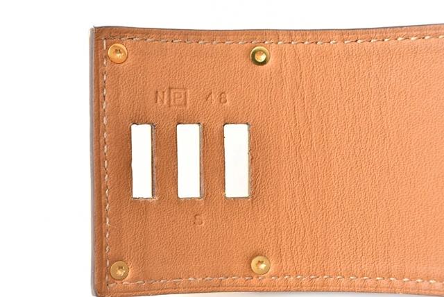 特徴 エルメスより、人気のバングルです。エルメスの象徴、メドール金具とがアクセントに。ゴージャスな印象の存在感の有るブレスレットです。さりげなく上品な大人の雰囲気。