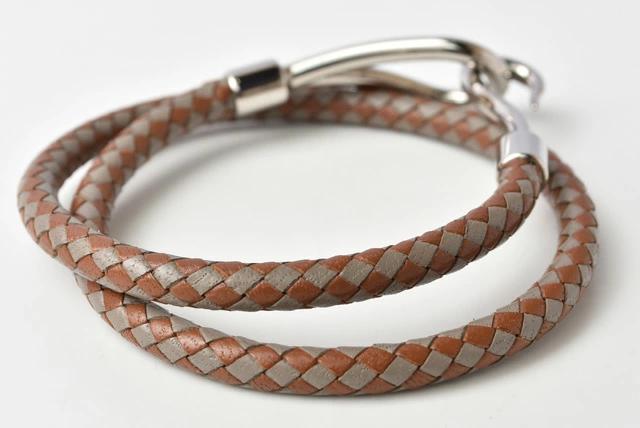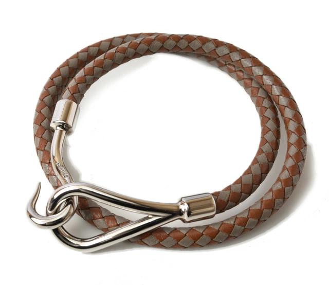 HERMES ジャンボブレス 編み込み レザー ブラウン/グレー シルバー金具