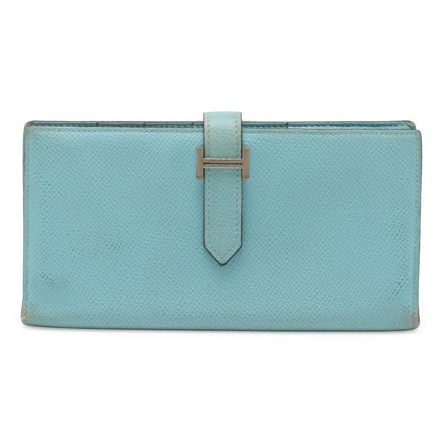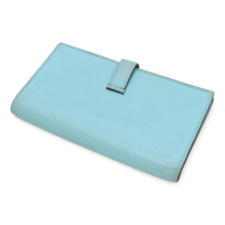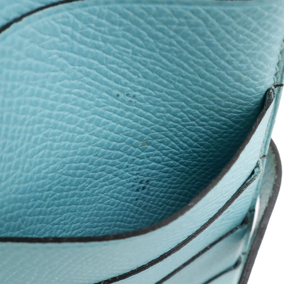 HERMES Bearn Soufflet Bi-fold Long Wallet, Epsom Leather, Blue Atoll, Light Blue, Silver Hardware, T Stamp