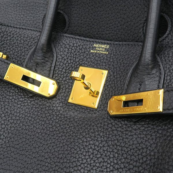エルメス バーキン30参考色:黒参考素材:トリヨンクレマンス金具:ゴールド刻印:□M刻印(2009年製)付属:クロシェット、カデナ、鍵2本、保存袋、エルメス正規店クリーニング済書類上品で高級感漂う、エルメスの最高峰ハンドバッグ『バーキン30』が入荷しました☆ 30サイズは扱い易く、日本人女性に好まれる人気のサイズ☆また、ファーストバーキンとして最適な定番のブラックカラー、トリヨンクレマンス素材でゴールドの金具の組み合わせになります。30cmサイズなら普段お出掛け時に持ち歩く財布・携帯などの小物類はラクラク収納することができ、色んな場面で活躍すること間違い無しです♪状態はAランクとなっており、本体の僅かな型崩れ、表面のスレ感、僅かな角スレ、金具部分の小傷、内部のスレ感がございます。目立つ使用感、ダメージは抑えられた比較的綺麗な状態です!お探しの方はお気軽にお問い合わせください!
