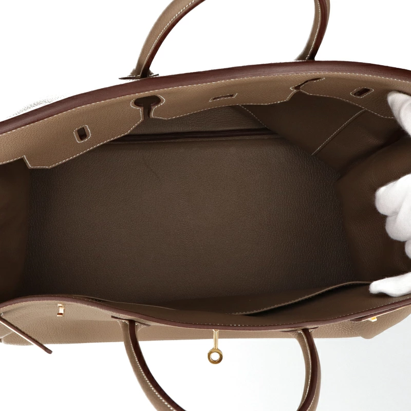 | 少々使用感有。B刻印(2023年製)。ゴールド金具。角擦れが少々あります。正面金具に小傷があります。内部底面に若干のシミ、押し跡があります。香水の匂い有。 |