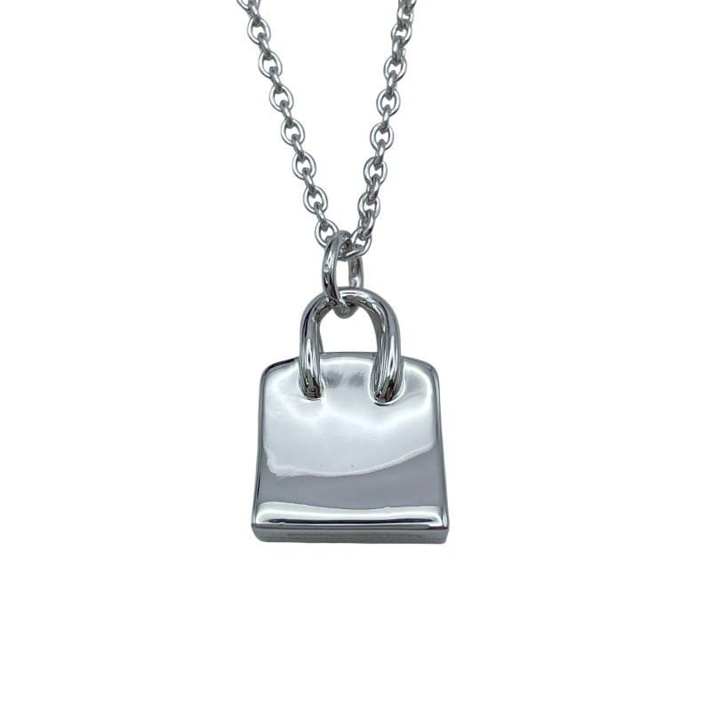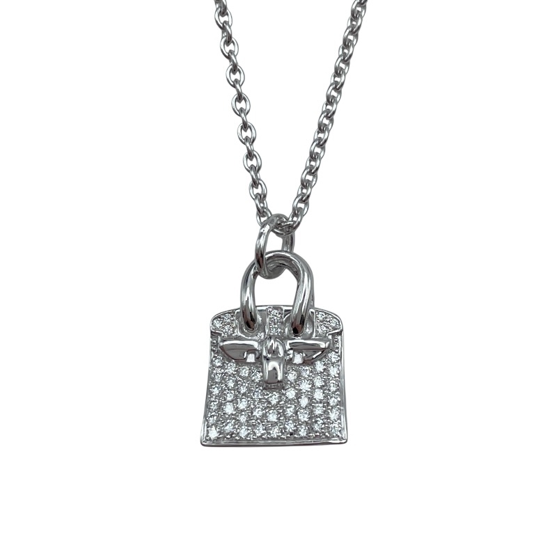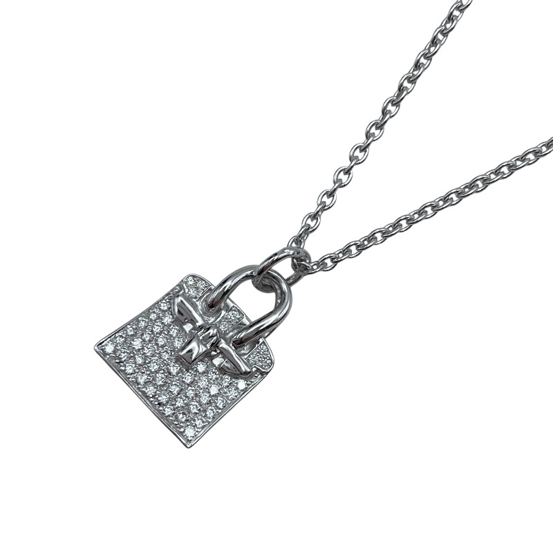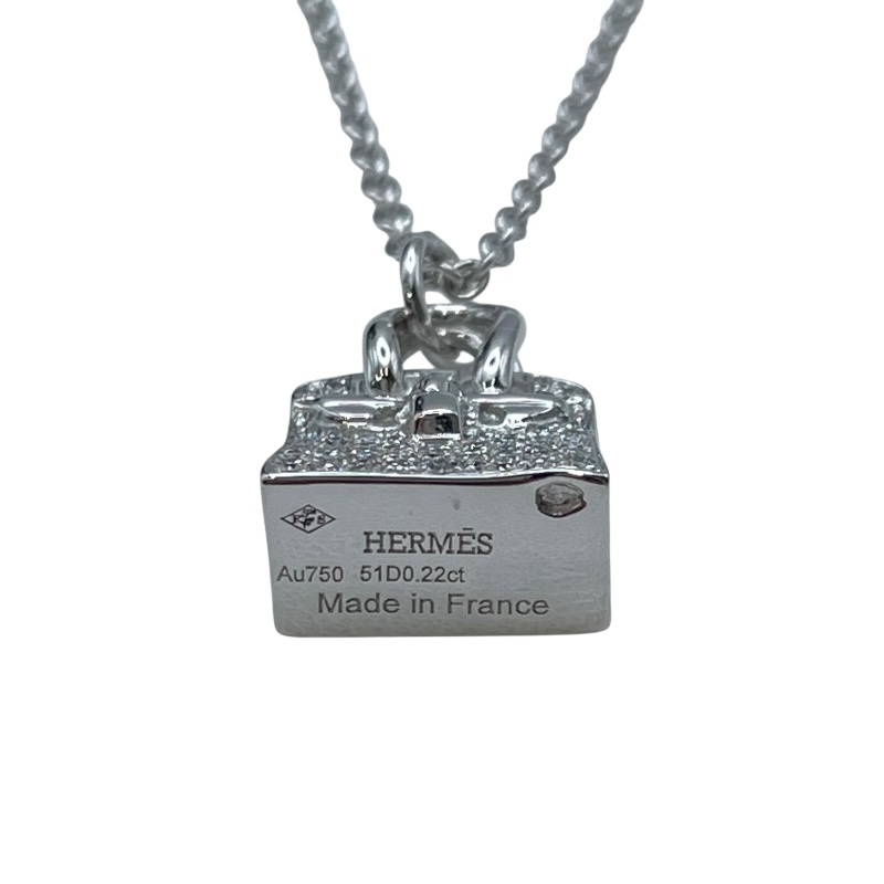 Brand: HERMESProduct Name: Birkin NecklaceMaterial: Au750Color: White GoldTarget: Women'sSize: Height: Approx. 15.4mmWidth: Approx. 11.2mmChain Length: Approx. 40cmStone: Diamond 0.22ctWeight: Approx. 10.9gAccessories: Our original box, our sales certificate [All accessories are shown in the accessories section and images]Condition: Minor scratches from use