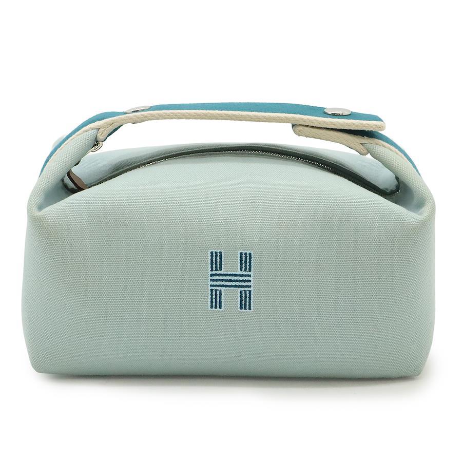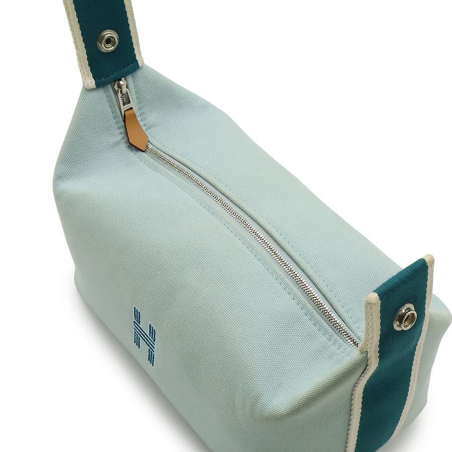 HERMES Bride A Black PM Bath Pouch/Makeup Pouch/Cosmetic Pouch Handbag in Mint Blue Canvas with Silver Hardware
