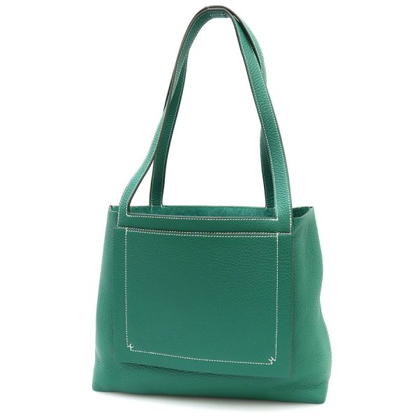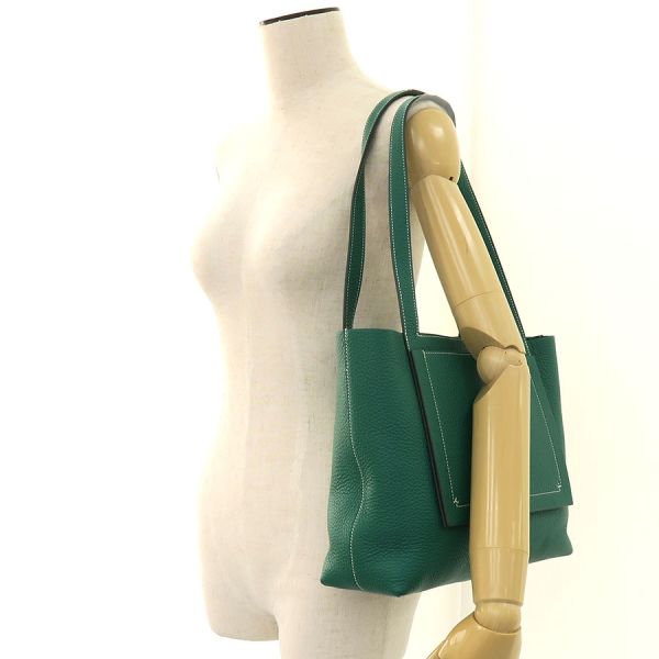 正面に大きなポケットのデザインが特徴的なトートバッグ♪カバセリエ31が入荷しました。間口はオープンタイプで、中はスエード素材で内ポケットは無しになりますが、正面にオープンポケットが1つ付いております。サイズ感は大きすぎず、ゆったり肩掛けでき、デイリー使いの必要最低限は収納できます。 ファッションのアクセントとしても使いやすい上品なカラーリングとなるのもオススメポイントです! 状態はAランクでの入荷になり、素材上の型崩れ、角や間口の僅かなスレ、ハンドルの僅かなクセ、内側の素材上のスレと少しの収納臭がございます。 使用感及びダメージは比較的抑えられた状態となり、非常にオススメのアイテムとなります。