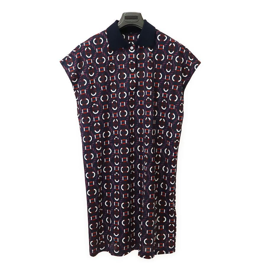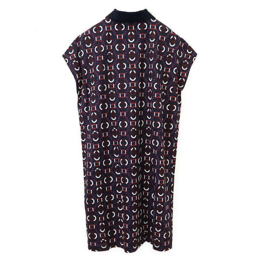 「カヌー」プリントのステッチ入りジャージー素材のドレス。