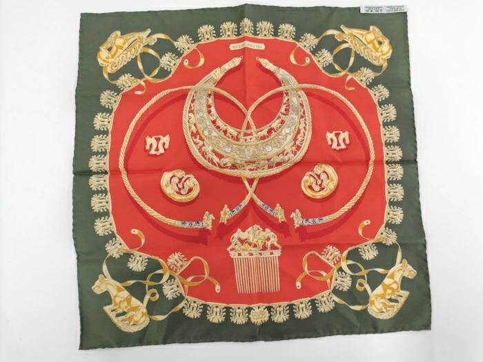 [商品情報]・カラー:レッド系マルチカラー・素材/ライン:シルク100%・サイズ:最大約 W42×H42(cm)