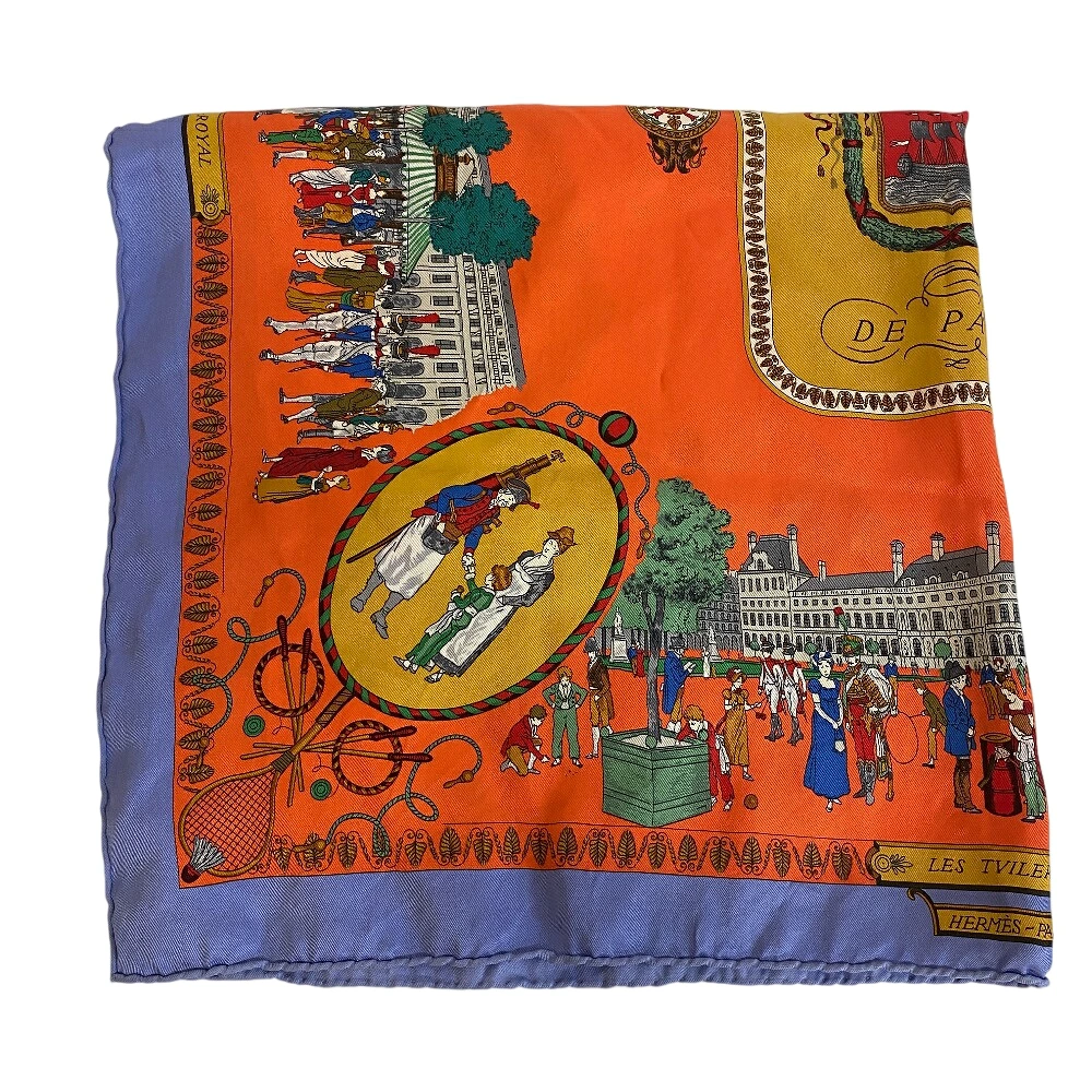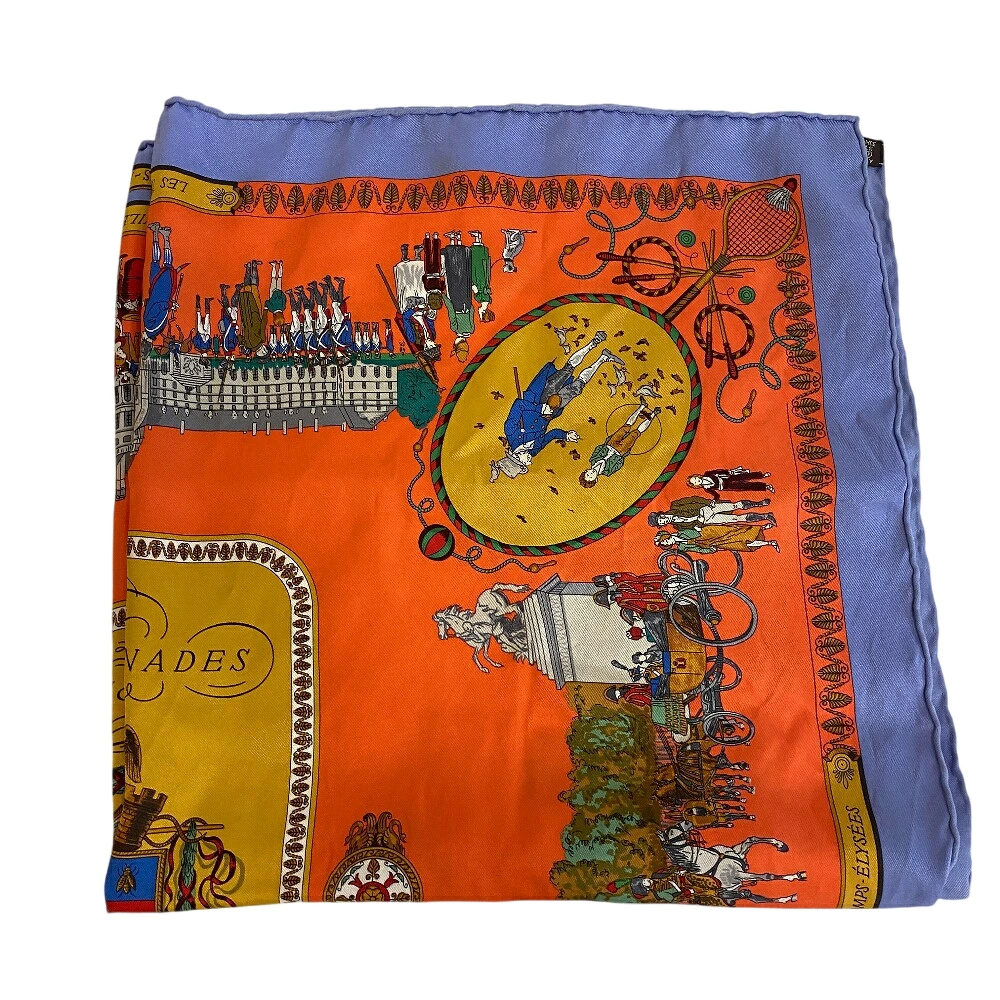 HERMES Carré 70 "Promenades de Paris" Scarf, Brand Cover, Ribbon, High, Orange, Unisex, Gift