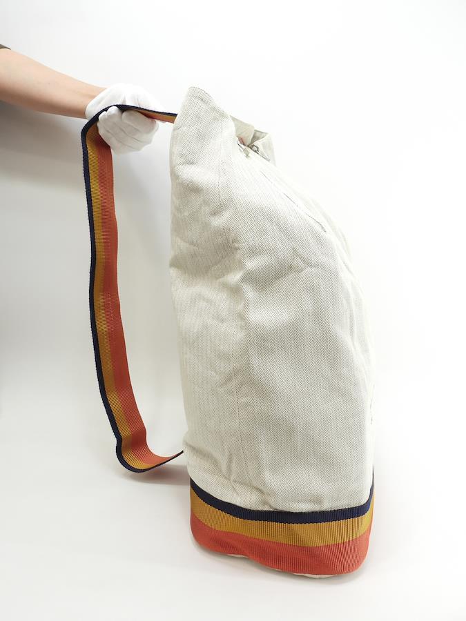品名 : キャバリエ ボディバッグ大 斜め掛けショルダーバッグ クロスボディバッグ スリングバッグメーカー : エルメス型番・素材 : コットンキャンバスライン・色 : オフホワイト/オレンジ マットシルバー金具参考定価 : 未確認サイズ : W28 x H47.5 x D20 x L76 cm製造番号 : 元から無し総重量 : 500g 本体重量 : 500g付属品 : 写真の中に写っているものです