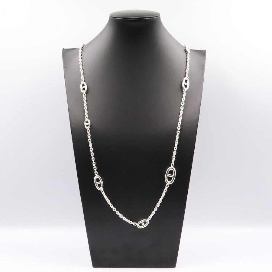 Condition: ASlight signs of wear, scratches, scuffs, and dirt.Brand: HERMESProduct Name: Chaine d'Ancre Farandoule Long NecklaceColor: SilverMaterial: 925 Sterling SilverSize: Neck Circumference: Approx. 118cmMotif Width: Approx. 14mm x Height: Approx. 24mm [Including frame, bail, etc.]Weight: Approx. 97.8gSpecifications: -Accessories: Storage Box*Items not listed in the accessories section are not included as a general rule.*If an outer box, storage bag, warranty card, etc. are included, their condition is not included in the product rank.Note: Slight signs of wear. *This item has been polished, but minor scratches may be present. Please note. The individual serial number is not displayed for privacy reasons. It is engraved.Please note that the colors displayed on your screen may differ from the actual colors depending on your display environment and settings.