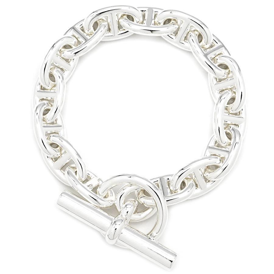 Hermès Chaine d'Ancre PM Bracelet, 15 Links, Sterling Silver (SV925) - A classic, popular, and excellent condition for women.Brand: HermèsModel Number: -FeaturesColor: SilverMaterial: 925 SilverSize: Fits wrists up to 13cmTotal Length: 16cmLink: Approx. W 1.4cm x H 0.8cm x D 0.2cmWeight: 34.0gAccessories: NoneRank: S [Overall Condition Details]This item has been stored unused. There may be some deterioration in condition due to storage.[Condition Details] Unused and stored.There are minor scratches, scuffs, and dents from storage and trying on.
