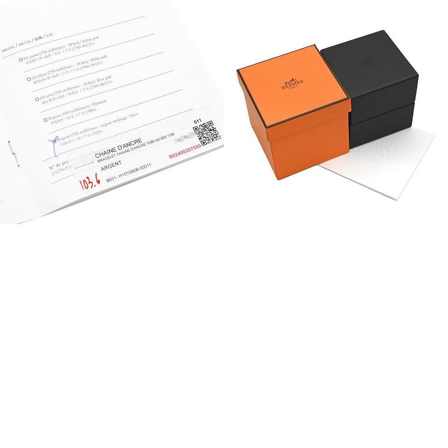 Hermès Chaine d'Ancre TGM Bracelet, 11 Links, Sterling Silver (SV925) - Men's [Box] Classic, Popular, Excellent ConditionBrand: HermèsModel Number: -FeaturesColor: SilverMaterial: 925 SilverSize: [Wrist Circumference] Fits wrists up to 16.5cmMaximum Width: 1.4cmTotal Length: 21.5cm[Link] Approx. W2.3 x H1.4 x D0.3cmWeight: 103.7gAccessories: Inner Box, Outer Box, Diamond and Precious Metals Certificate (Purchased overseas in 2025)*No accessories other than those listed are included.Rank: A [Overall Condition Details]There is minor damage due to use and storage, but the item is in relatively good condition. *See images and comments.[Condition Details] Used, minuscule condition.There are minor scratches, dents, and slight discoloration as seen in the images.
