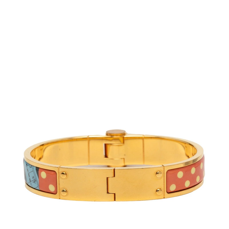 - エルメス 馬 ホース ドット バングル ブレスレット ゴールド ピンク ブルー メッキ レディース HERMES 【中古】