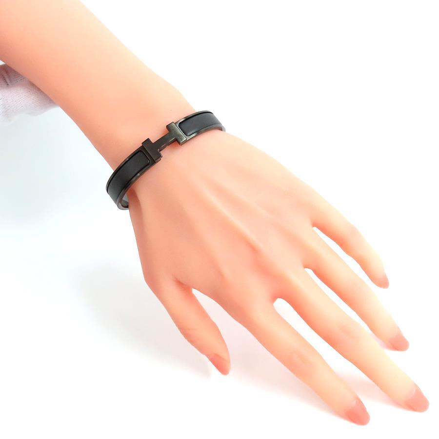 Product Rank: AProduct Condition: There are minor scratches on the side that are visible when held up to light.There is some dullness, but overall the item is in good condition with no signs of use.Please see the images for details and feel free to contact us with any questions.*The texture and color may appear different from the actual product depending on the shooting environment and your monitor settings.Brand: [HERMES]Product Name: Click Clack PMModel Number:Serial No.:Stamp: HERMES ****** MADE IN FRANCEMaterial: MetalStone:Color: Saw BlackSize: Size: PMWidth: (approx.) 1.2cmInner Diameter: (approx.) 19.0cm*Please allow for slight variations in measurements.Weight:Reference Retail Price:Accessories: Box, dust bag, booklet