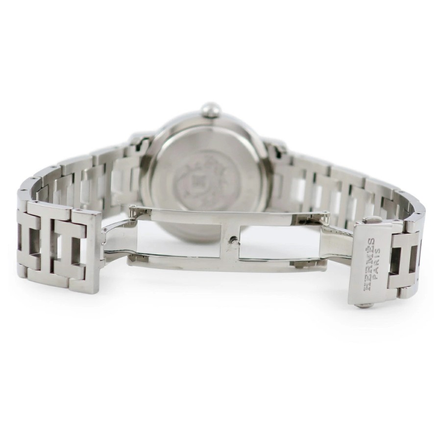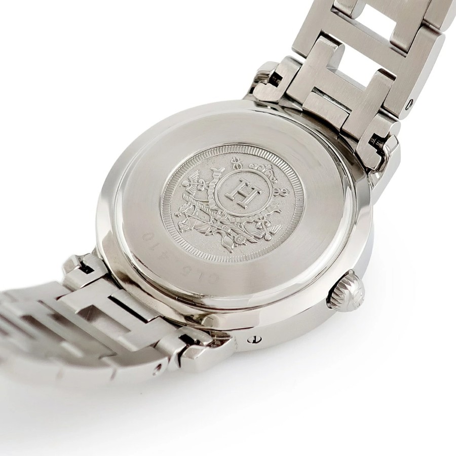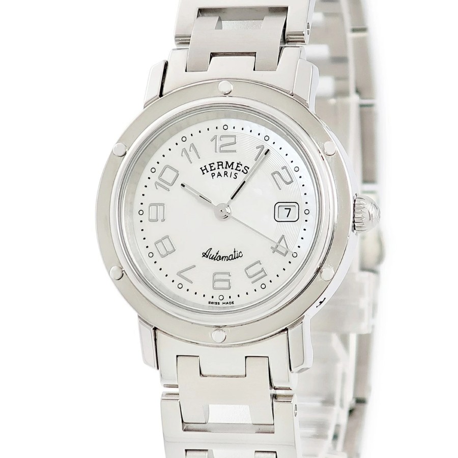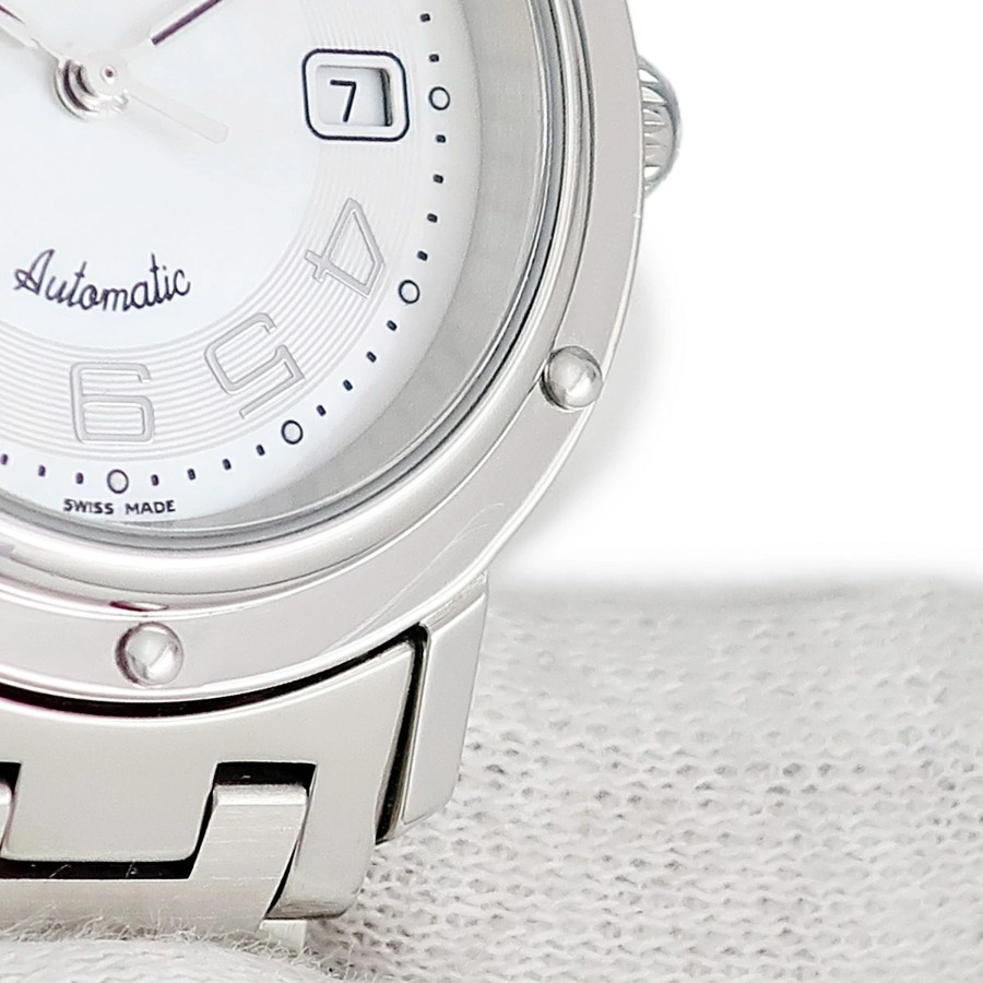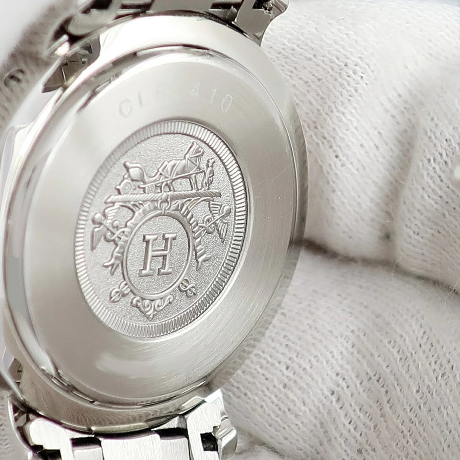エルメス HERMES クリッパー デイト CL5.410 OH済 ホワイト シェル アラビア メンズ レディース 腕時計クオーツ ホワイト 【中古】【店頭受取不可】
