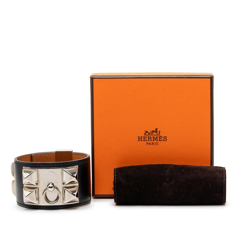 - エルメス ブレスレット ブラック シルバー ボックスカーフ メタル レディース HERMES 【中古】
