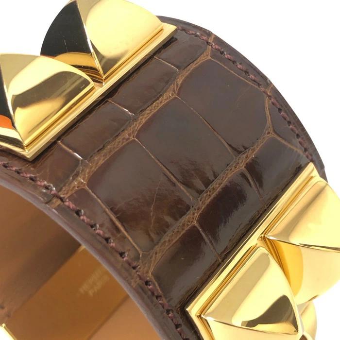 | 商品説明 | 【管理番号】 016150w 【ブランド名】エルメス 【商品名】 コリエ ド シアン 【アイテム】レザーブレスレット S アリゲーター □R刻 2014年 【型番】 【サイズ】 腕周り:約14~16.5cm 幅:約3.9cm 【色・柄】 ブラウン 【素材】 アリゲーター・GP 【付属品】 箱・保存袋・CITESトレーサビリティ情報 【外観ランク】 SAランク 【商品補足説明】美品ですが金具に小傷・一部変色あり。 |
