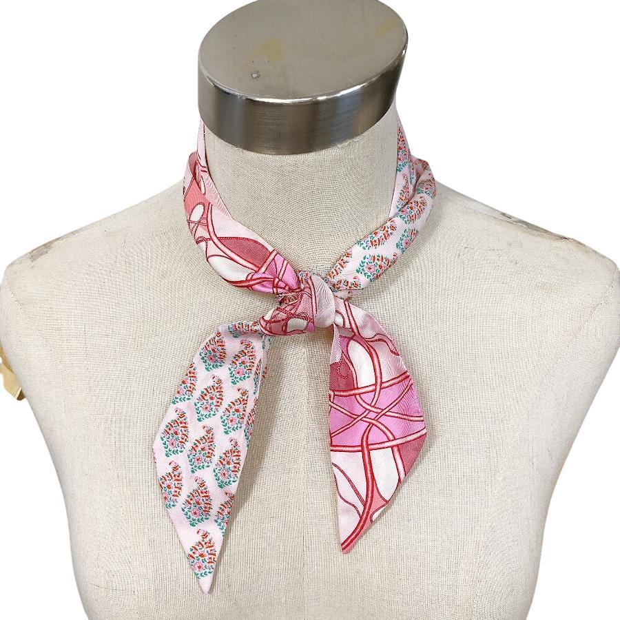 HERMES Coup de Fouet au Bloc silk Twilly scarf pink silk Women