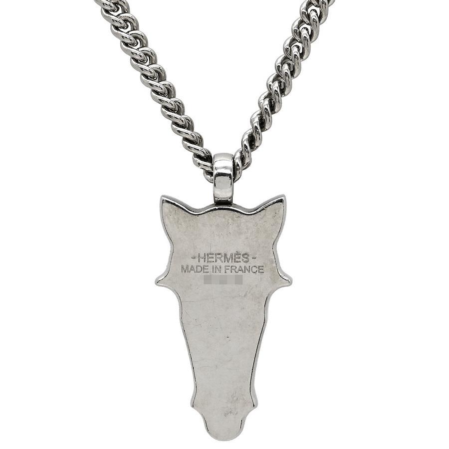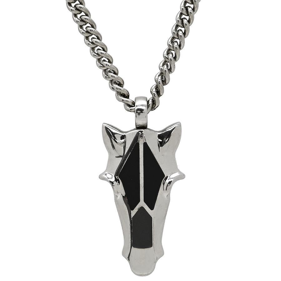 Hermès Destrier Horse Head Necklace, Buffalo Horn, Metal, Lacquer, Black/Silver, Horse Motif, Women'sBrand: HermèsFeaturesColor: Black/SilverMaterial: Buffalo Horn / Metal / LacquerSize: Total Length: 50cmTop: 16mm W x 33.3mm HWeight: 25.8gSpecificationsAccessories: NoneRank: AB [Overall Condition Details]This item shows some overall damage due to use and storage. *See images and comments.[Condition Details] Pre-ownedThere are scratches, scuffs, and dents on the surface and buffalo horn.