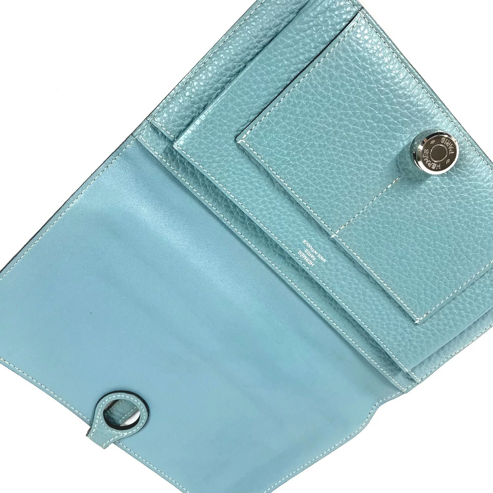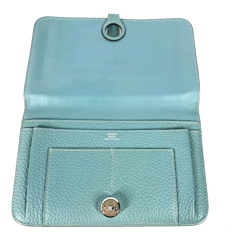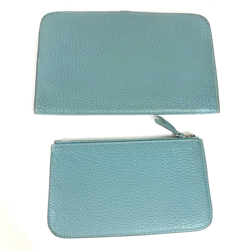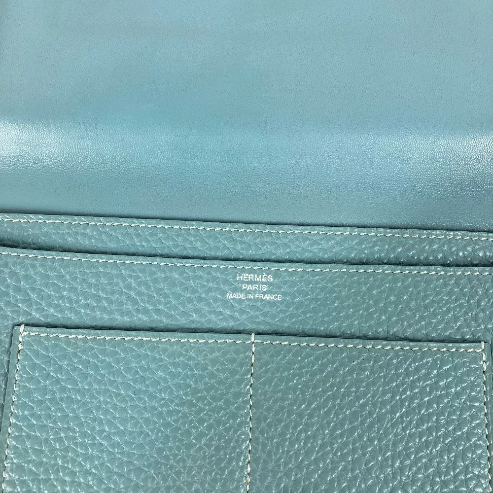 HERMES Dogon Duo GM Long Wallet with Coin Case, Togo, Women's, Blue Jean, Pre-owned