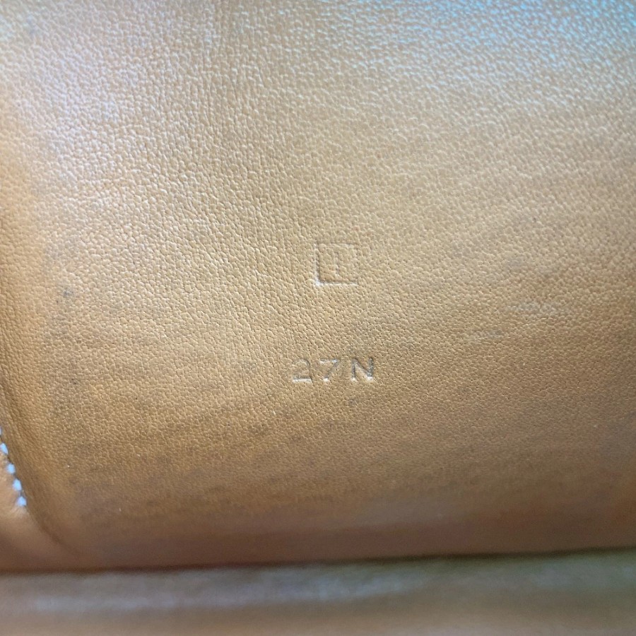 | 状態 | 【外・表面】擦れ、キズ、ヨレ、汚れ、シワ、ほつれ 【外・コーナー】擦れ、キズ、汚れ、コバ割れ、コバ剥がれ、亀裂 【外・形状】少し型崩れ 【内側】擦れ、キズ、破れ、汚れ、黒ずみ、ほつれ、凹み、亀裂 【ファスナー部分】小キズ、擦れ、くすみ、汚れ 【におい】無し 【金具部分】擦れ、キズ、薄汚れ、くすみ、打痕 全体的に膨らみ有り。ベルト部分のレザーに劣化、糸ほつれ、剥がれ有り。ファスナープル、レザーに劣化、剥がれ、破れ有り。 |