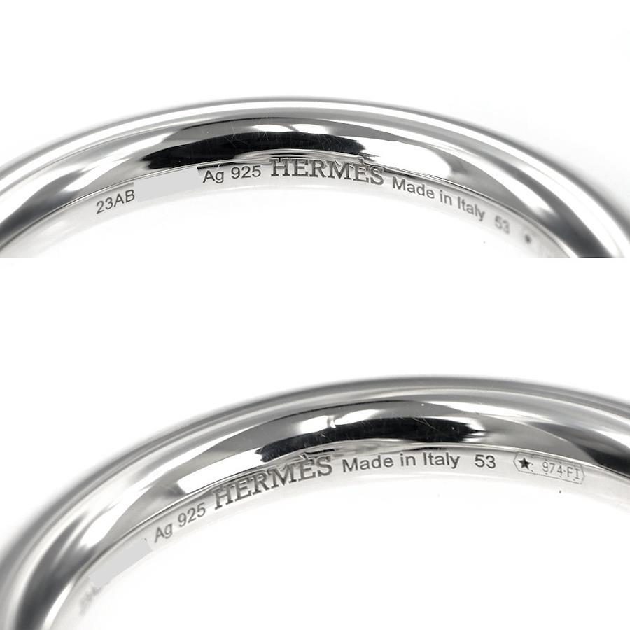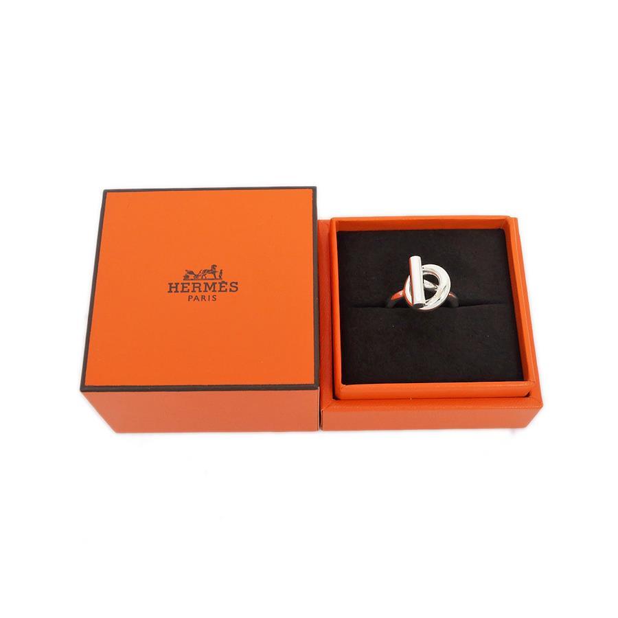 Product Rank: SProduct Condition: While there are almost no visible signs of wear and it is in mint condition, due to the nature of the material, it is prone to scratches and has minor scratches and slight stains throughout. (See images 8 and 9.)Slight scratches and scuffs may occur during display in the store, and due to the nature of the silver material, discoloration may occur during display. Thank you for your understanding.Please view the images and feel free to contact us with any questions.*The texture and color may appear different from the actual product depending on the shooting environment and your monitor settings.Brand: HERMESProduct Name: Echappé Ring, MMModel Number:Serial No.: 23AB******Stamp: Made in ItalyMaterial: Ag925 SilverStone:Color: SilverSize: Marked Size: 53Ring Width (Arm): Approx. 4mmMotif Size: Approx. 1.6cm x 1.6cmPlease allow for slight variations in sizeWeight: Approx. 9.5gPrice: Suggested Retail PriceAccessories: Box