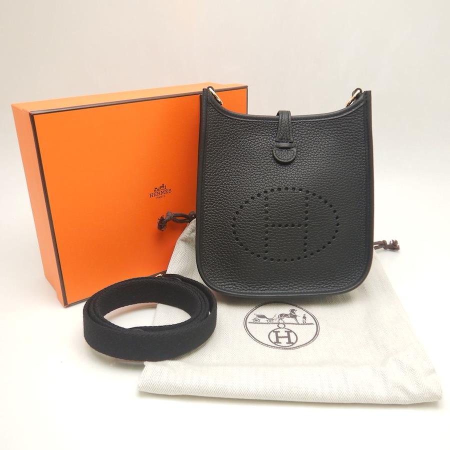 HERMES Evelyn TPM Shoulder Bag in Taurillon Clemence, Black/252971 [Pre-owned]