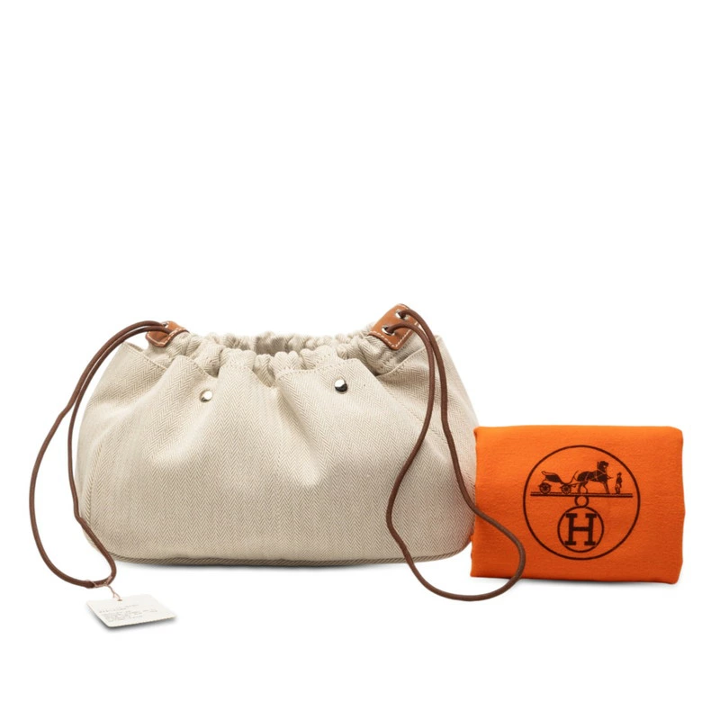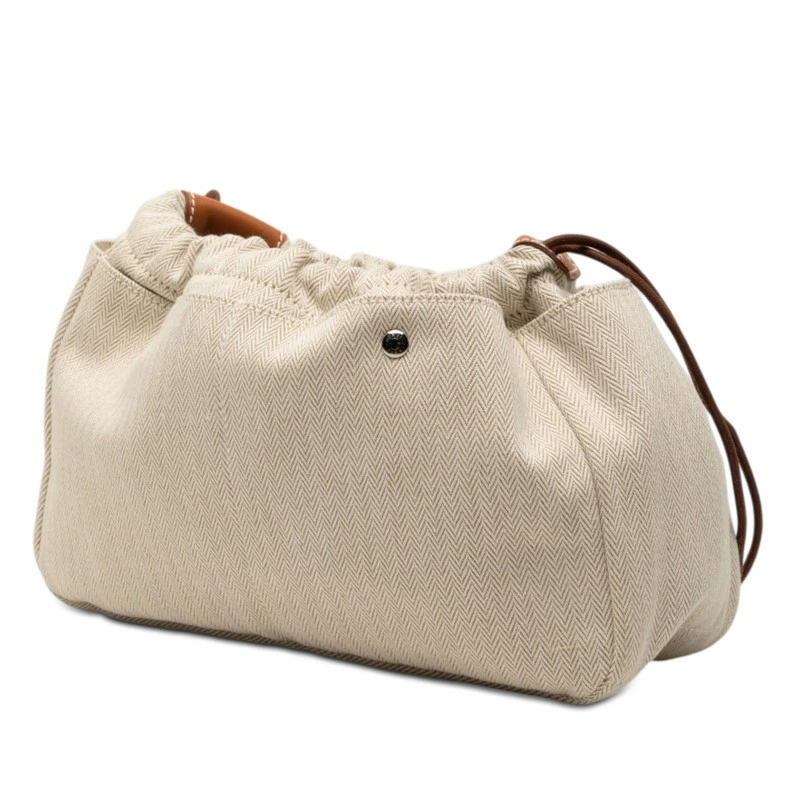 Hermes Fourbi 25 Pouch, Natural Brown Toile Chevron Leather, Women's, HERMES [Pre-owned]