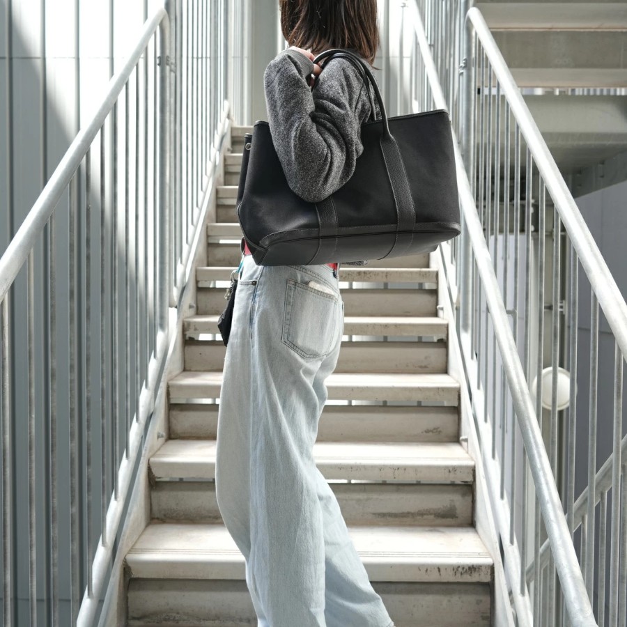 外側:キャンバス生地スレ・ほつれ毛羽立ち小 レザー部分スレ ハンドル:コバひび 内側:汚れ