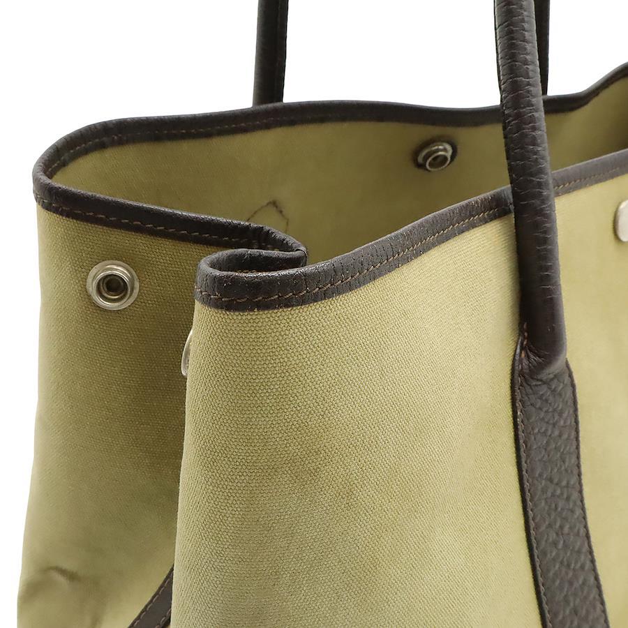 【コメント】使用感のあるお品物でございます。エルメス定番の人気商品ガーデンパーティシリーズ。PMサイズは女性が一番使いやすい大きさで、シンプルながらキャンバス地とレザーのコンビネーションが非常にエレガントでハイセンスなアイテムです。