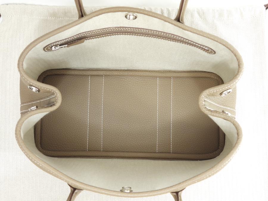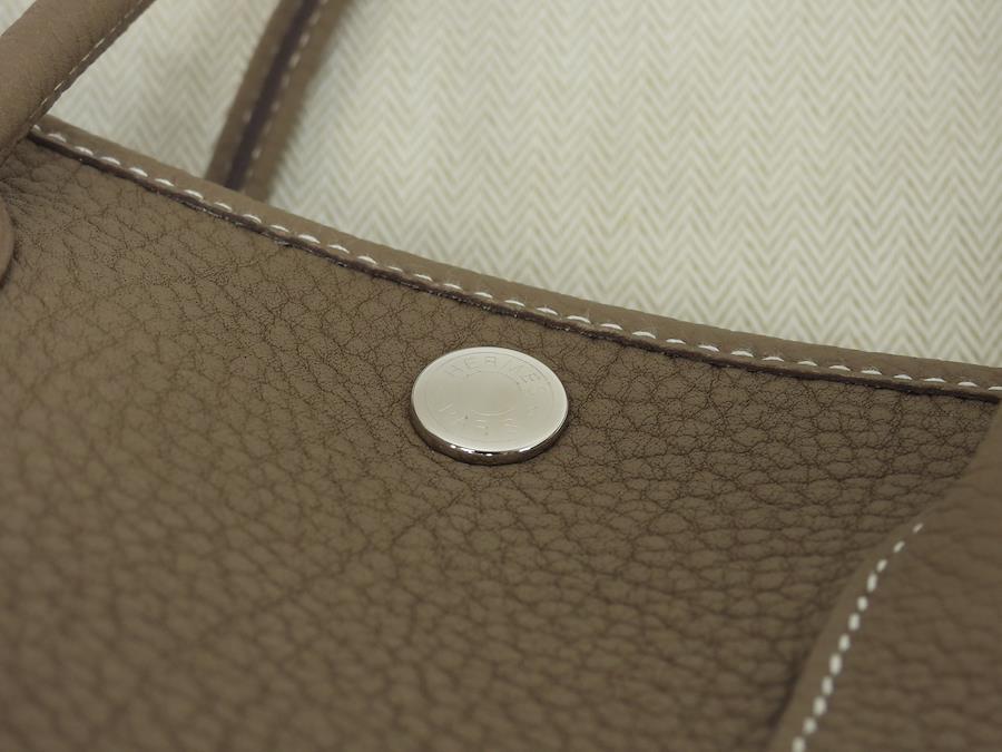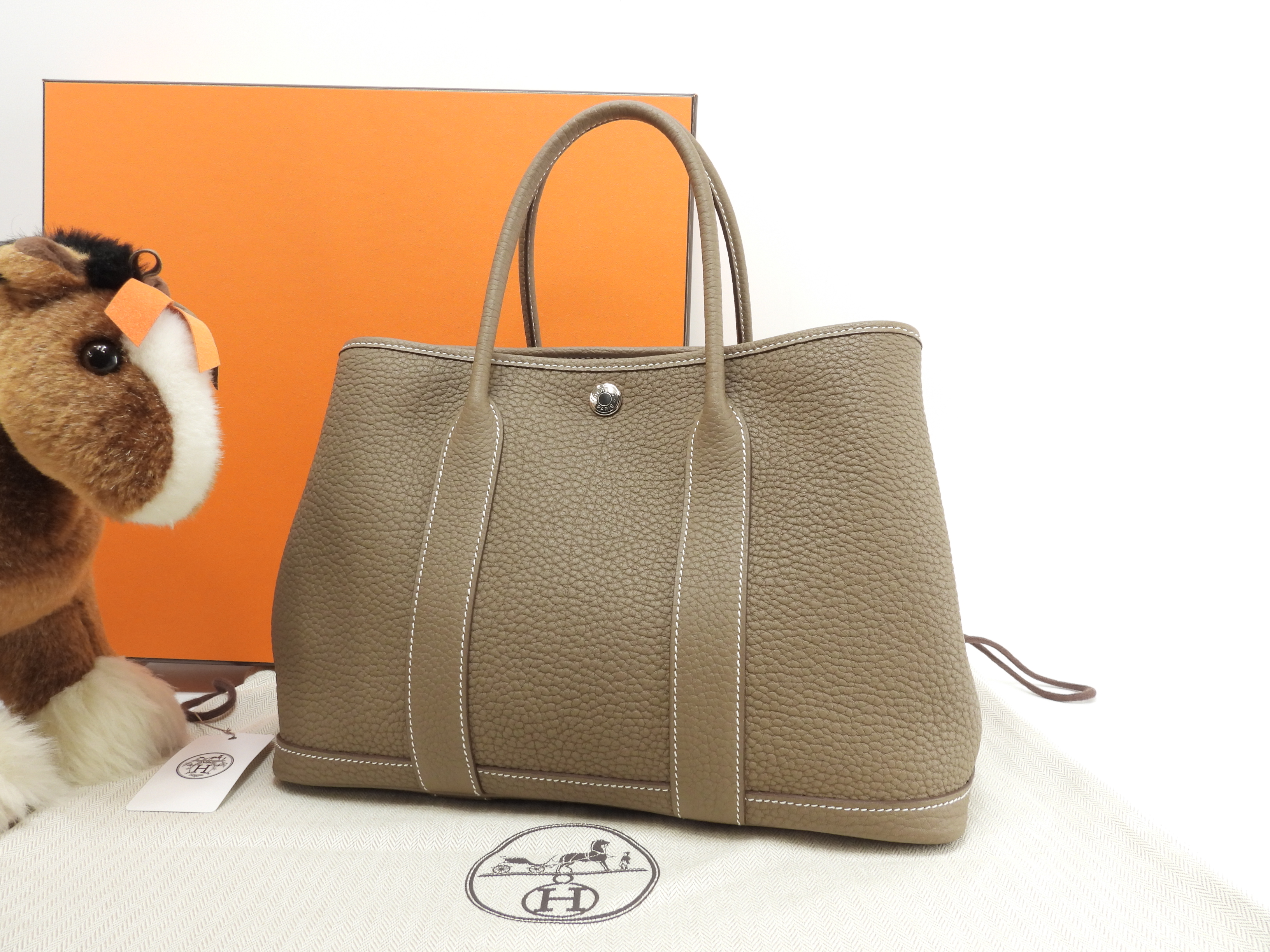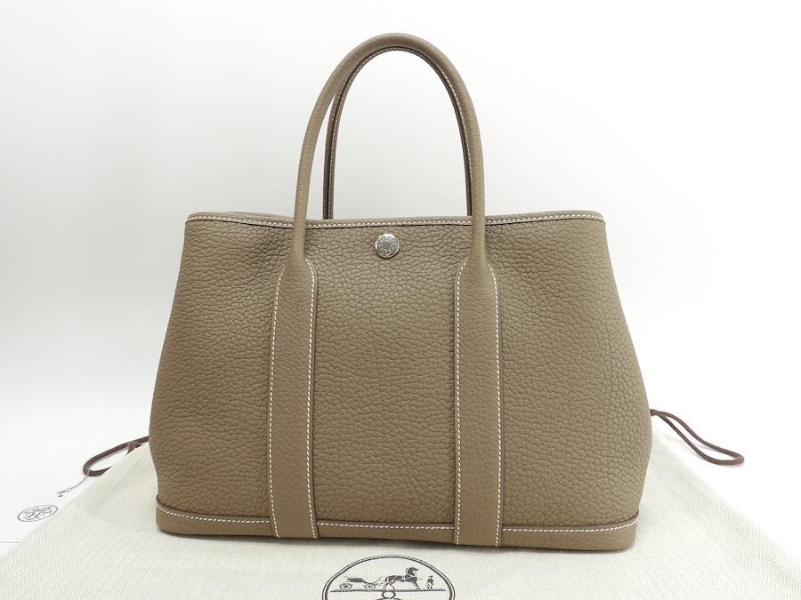 品名 : ガーデンパーティTPM (GardenParty TPM) ガーデンパーティ30 トートバッグ ハンドバッグ トップハンドルバッグメーカー : エルメス (HERMES)型番・素材 : ネゴンダレザーライン・色 : エトープ シルバー金具参考定価 : 未確認サイズ : W30 x H21 x D14 x G34 cm製造番号 : U刻総重量 : 1690g 本体重量 : 560g付属品 : 写真の中に写っているものです