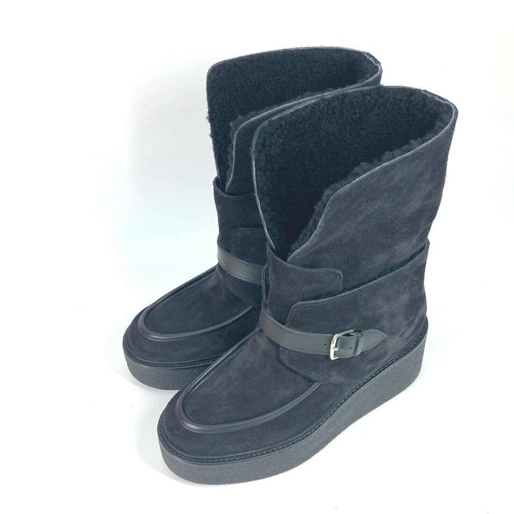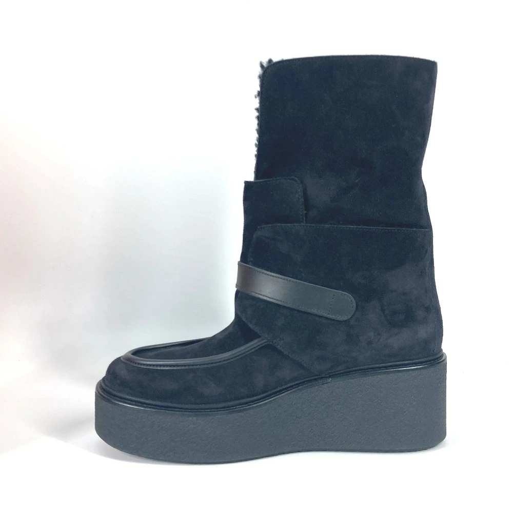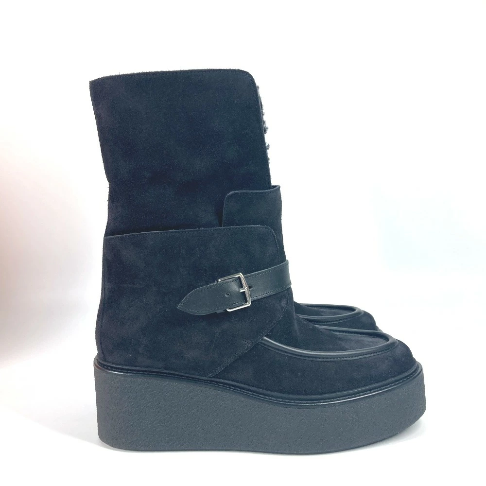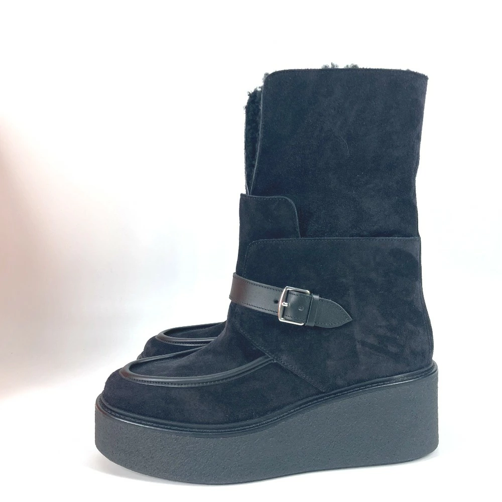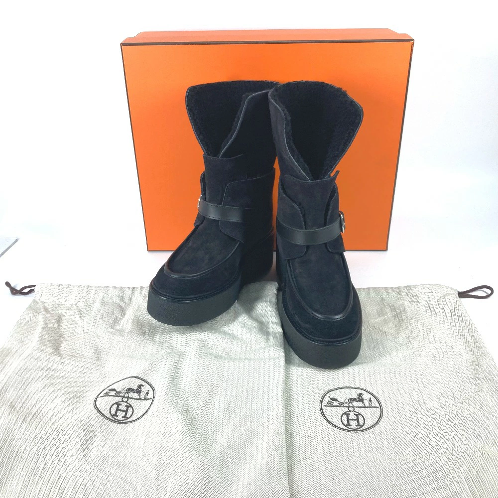 HERMES H232029Z Hemispher Short Boots, Heeled Boots, Mouton/Suede, Women's, Black, Like New [Pre-owned]