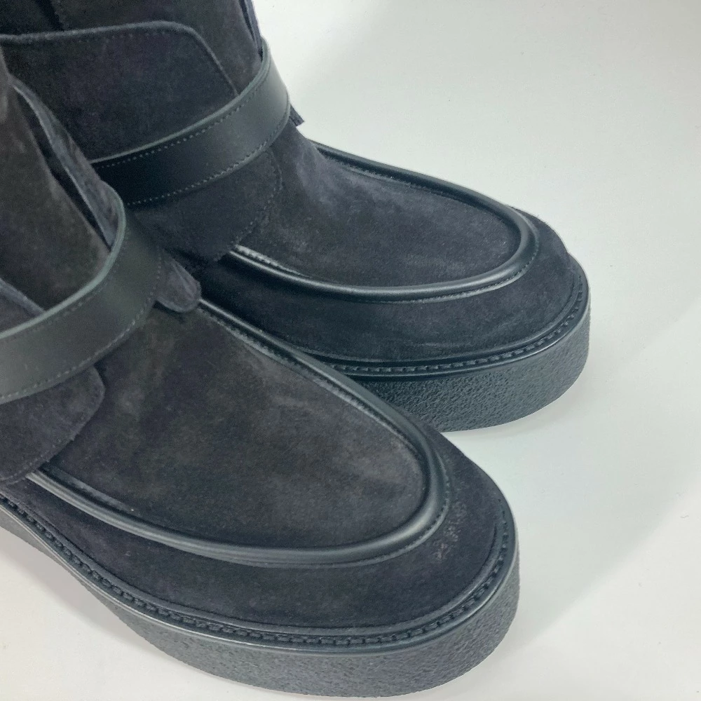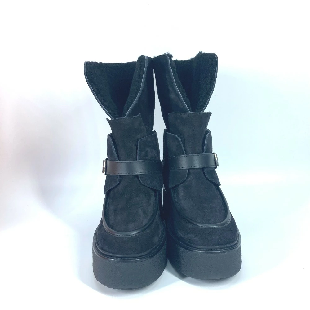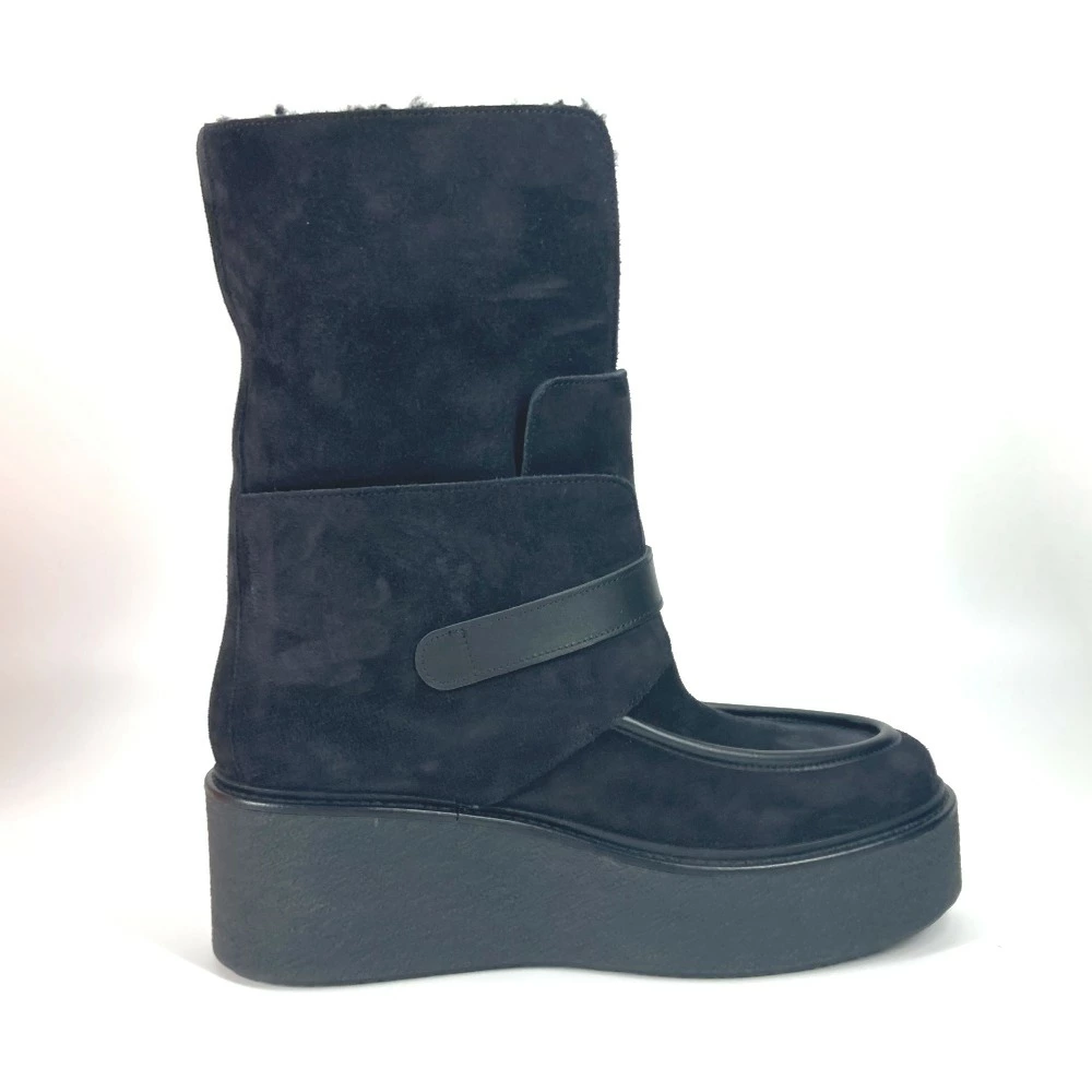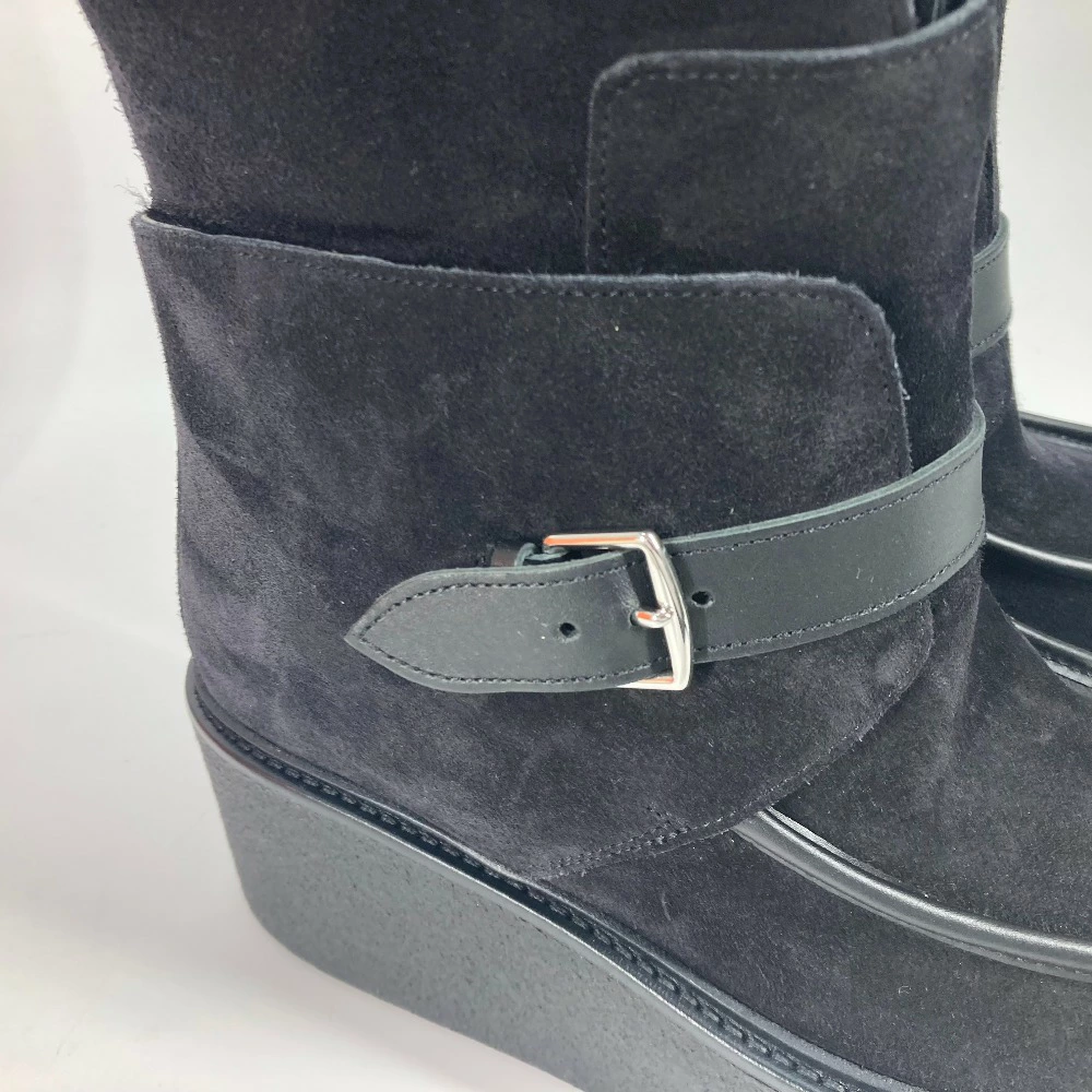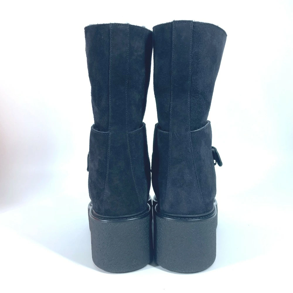 HERMES H232029Z Hemispher Short Boots, Heeled Boots, Mouton/Suede, Women's, Black, Like New [Pre-owned]