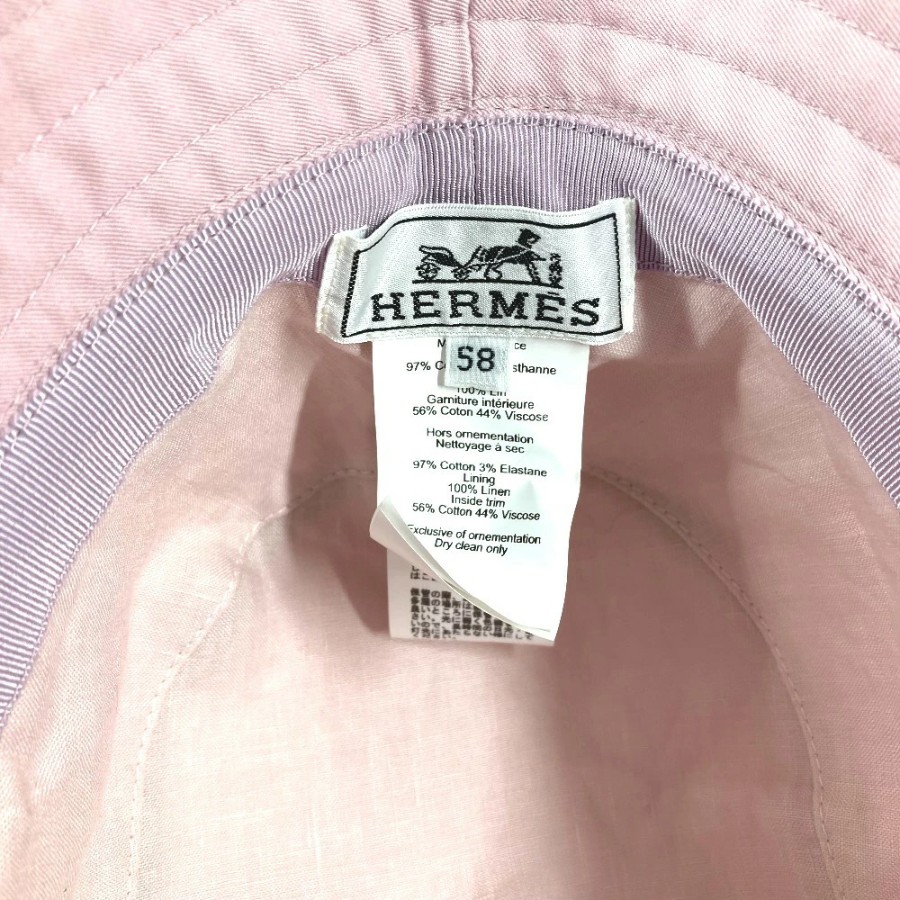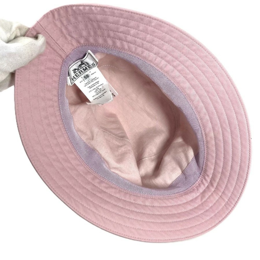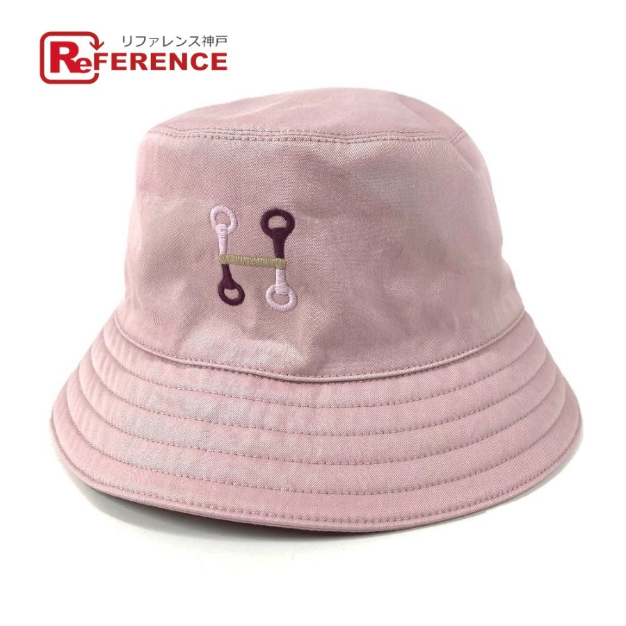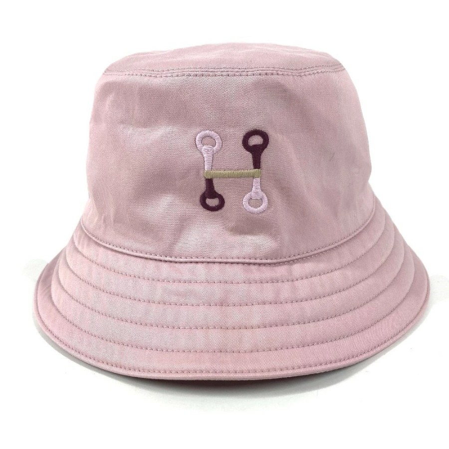 HERMES H251009N H-Mall Embroidered Hat, Fred H-Mall Hat, Bucket Hat, Bob Hat, Cotton/Polyurethane, Unisex, Guimauve Pink [Used]