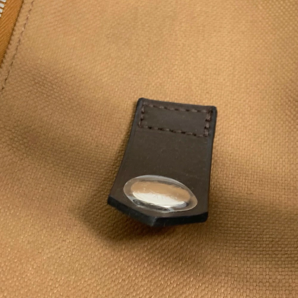 | 商品説明 | 上部のクロージングにエルメス・セリエをエングレービングしたクルー・ド・セルのスナップボタン2個、開閉しやすいザマック製ダブルジップ。 |