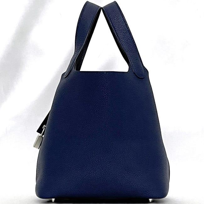 エルメス ハンドバッグ ピコタンロック PM f-23697 ネイビー ブルーニュイ 美品 レザー トリヨンクレマンス パラジウム金具 中古 Y刻印 2020年 HERMES カデナ P金具 トリヨンレザー 紺色 定番 人気 メンズ レディース 本革 シンプル ブランド 本物 鑑定済み