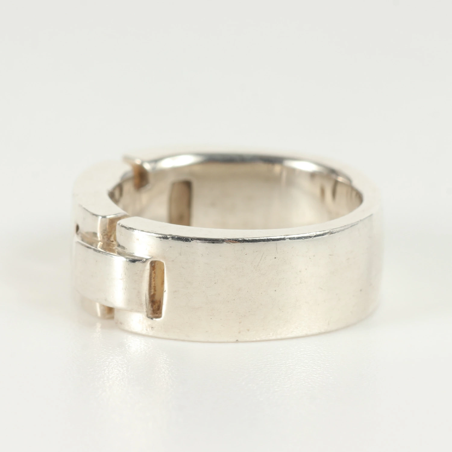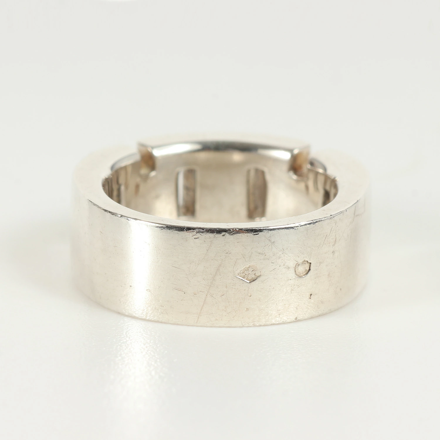 | 商品説明 | 「H」をモリーフとしたリングを組み合わせたアイコニックなリングになります。シンプルなモデルで男女問わずお使いいただけるアイテムです。 |