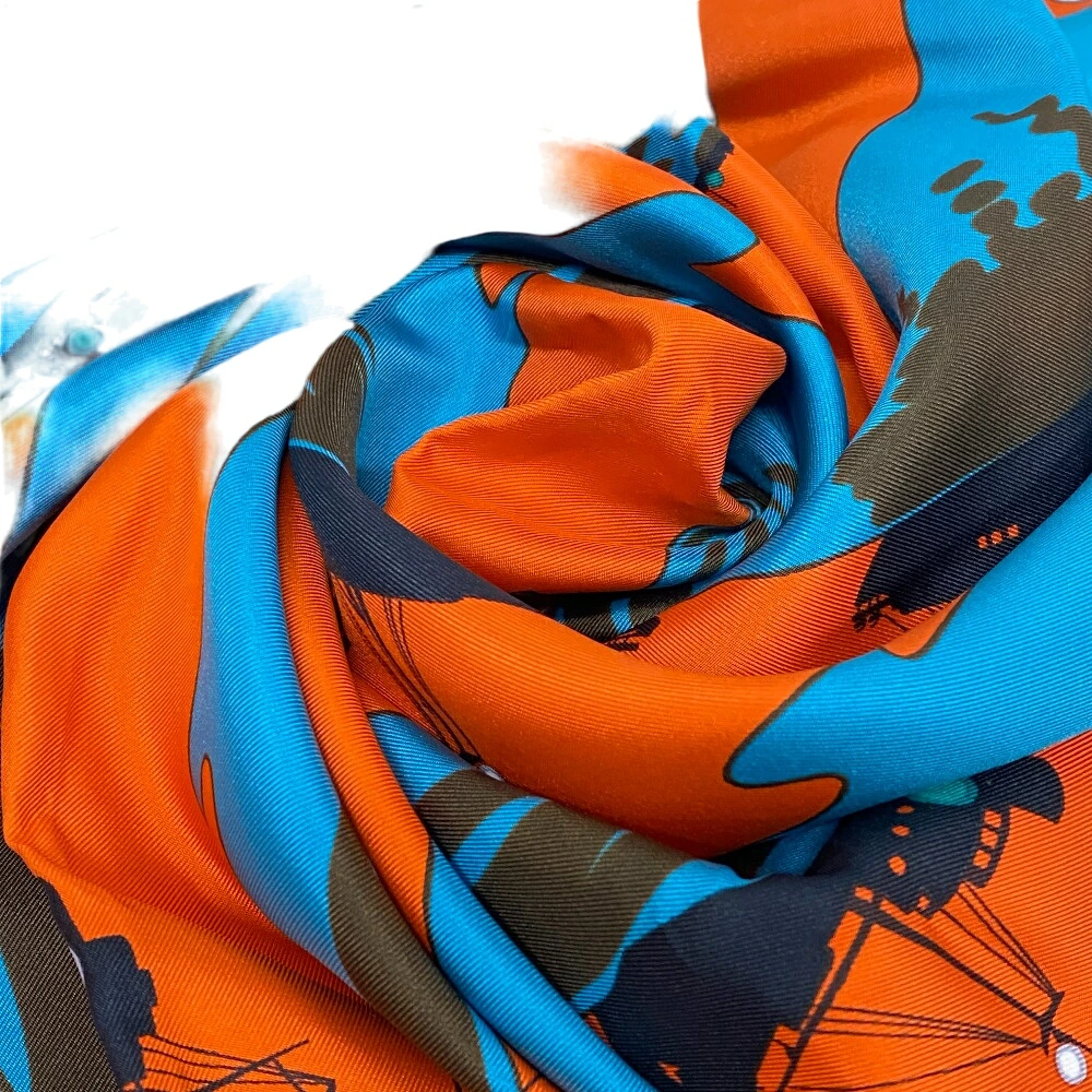 商品名 | HERMES/エルメス カレ90 FEUX DE ROUTE APERCUS LA NUIT,EN MER 夜の海に光る航路灯 スカーフ ブラウン レディース |