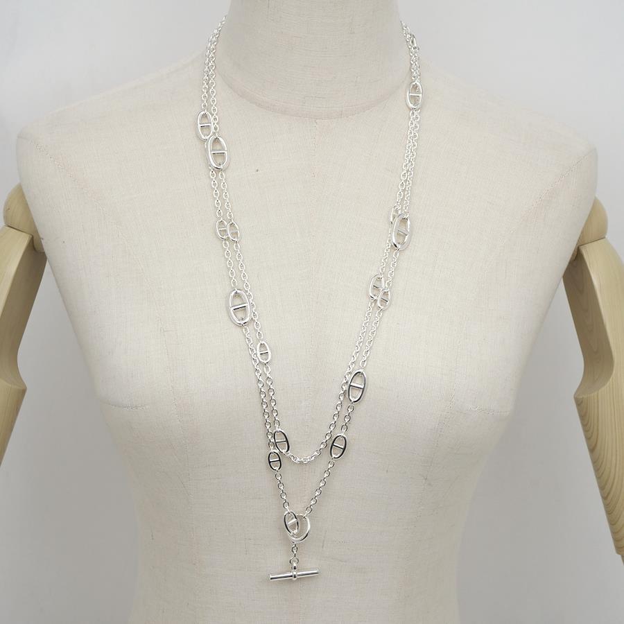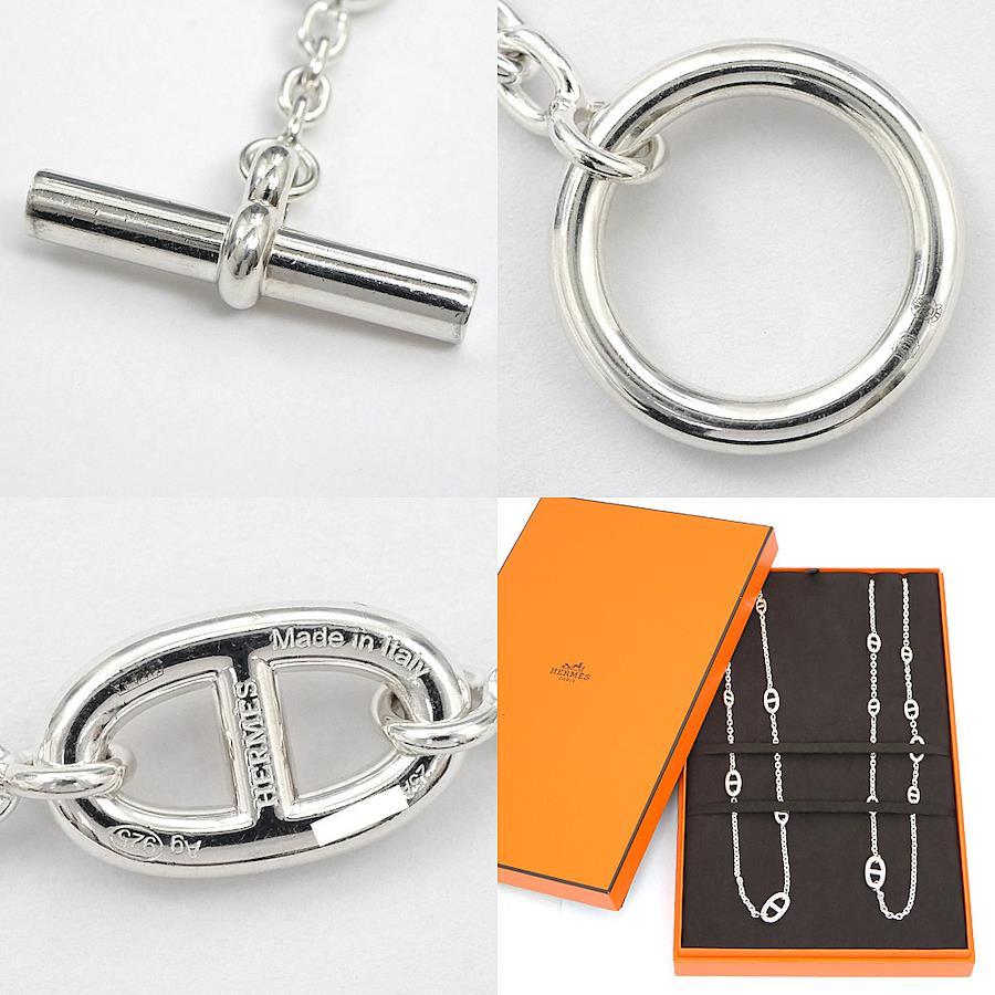 Product Rank: AProduct Condition: Due to the nature of the material, this item is prone to discoloration and scratches. There are small scratches throughout due to friction and rubbing between parts.Minor scratches and scuffs may occur during display in the store, and discoloration may occur due to the nature of the silver material. Thank you for your understanding.Please view the images and feel free to contact us with any questions.*The texture and color may appear different from the actual product depending on the shooting environment and your monitor settings.Brand: [HERMES]Product Name: Chaine d'Ancre Farandole 160 NecklaceModel Number:Serial No.: 25A*******Stamp: HERMES Made in Italy Ag925 25A*******Material: Ag925 (Silver)Stone:Color:Size: Total Length: Approx. 160cmWeight: Approx. 133.7gReference Retail Price:Accessories: Box