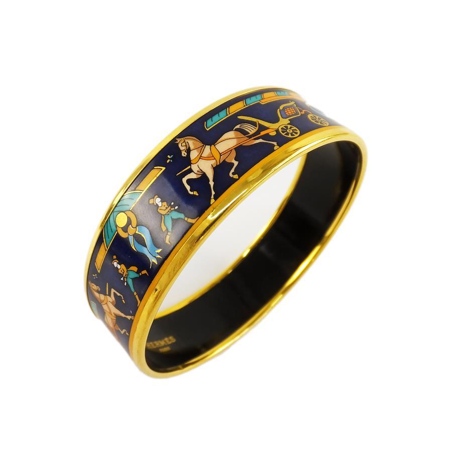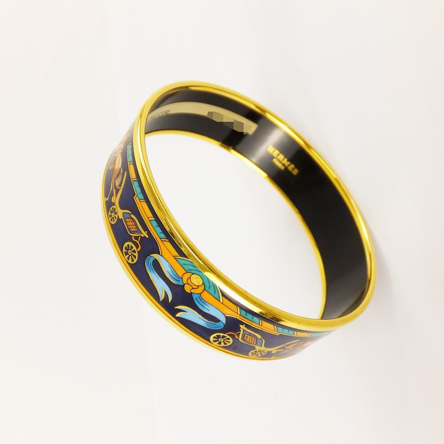 Hermès Blackened MM Bangle, Navy Blue with Gold Hardware, Carriage Design, Approx. 39.1g, Wrist Circumference: Approx. 21cm