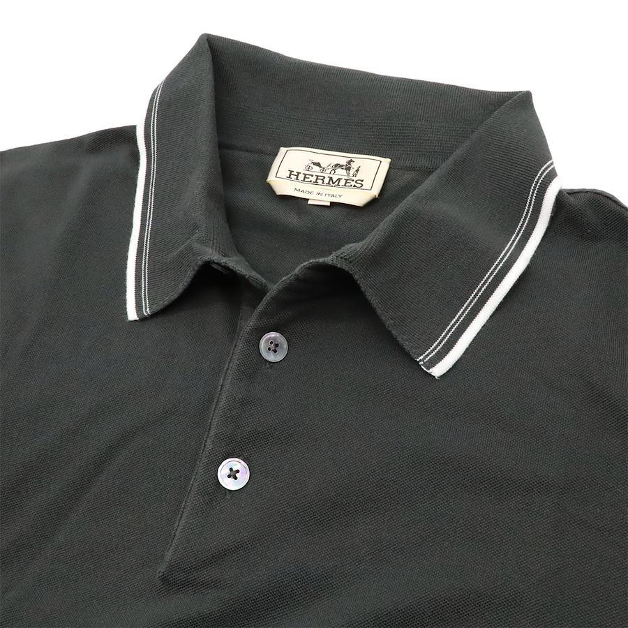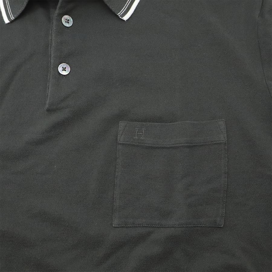 HERMES Hermès Short Sleeve Polo Shirt with H Logo and H Embroidery, 100% Cotton, Gray, Size XXL